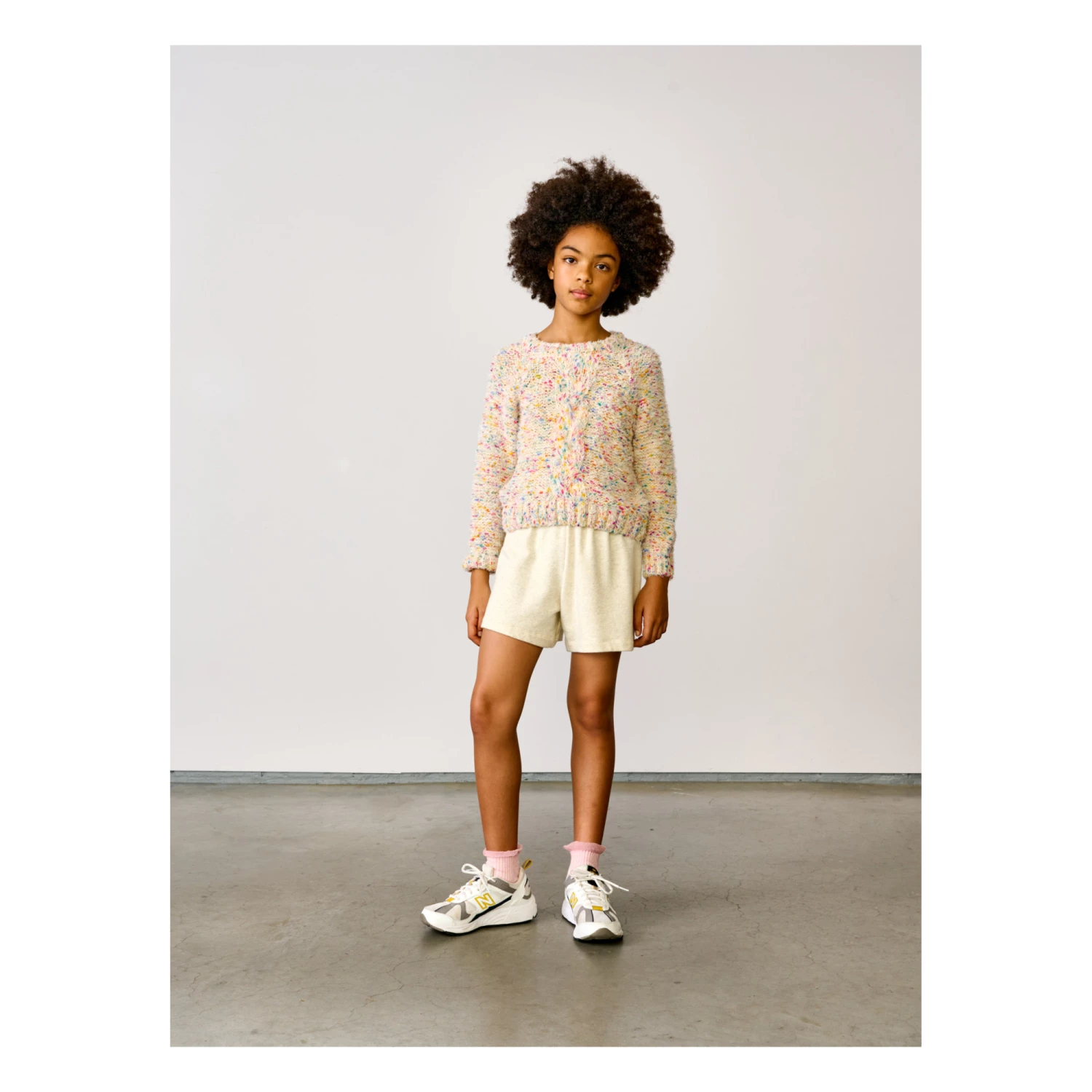 - Fluffy knit : 28% Recycled polyester, 26% Recycled cotton, 26% Polyamid, 20% Cotton