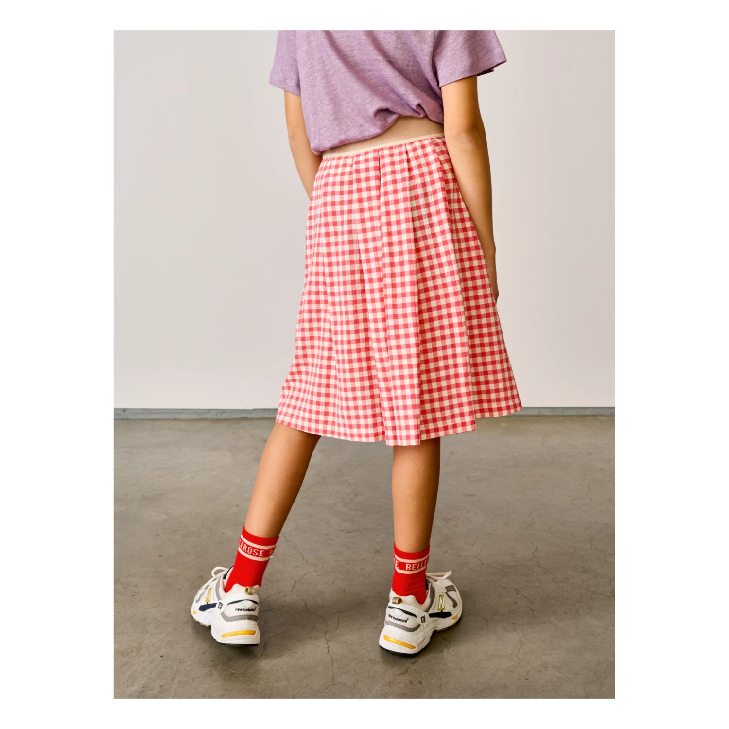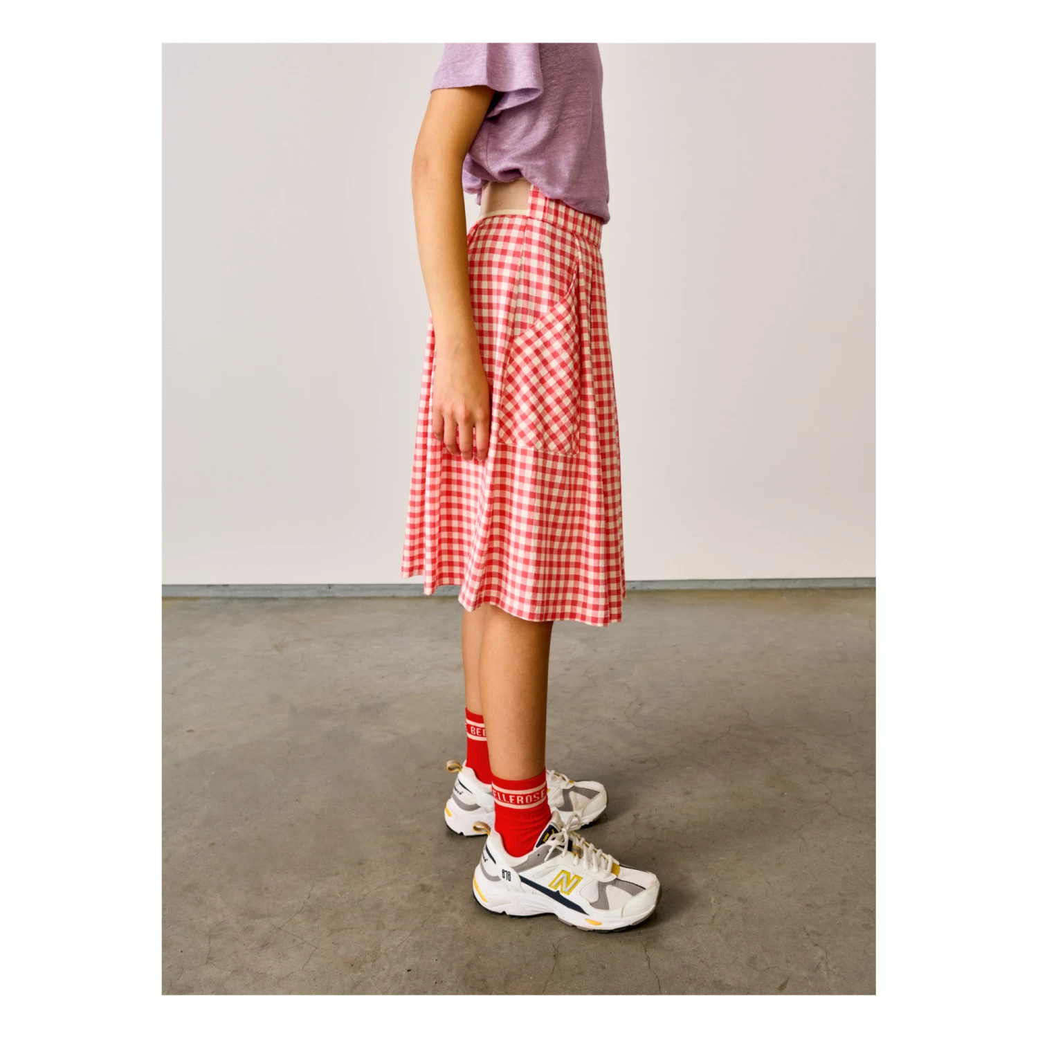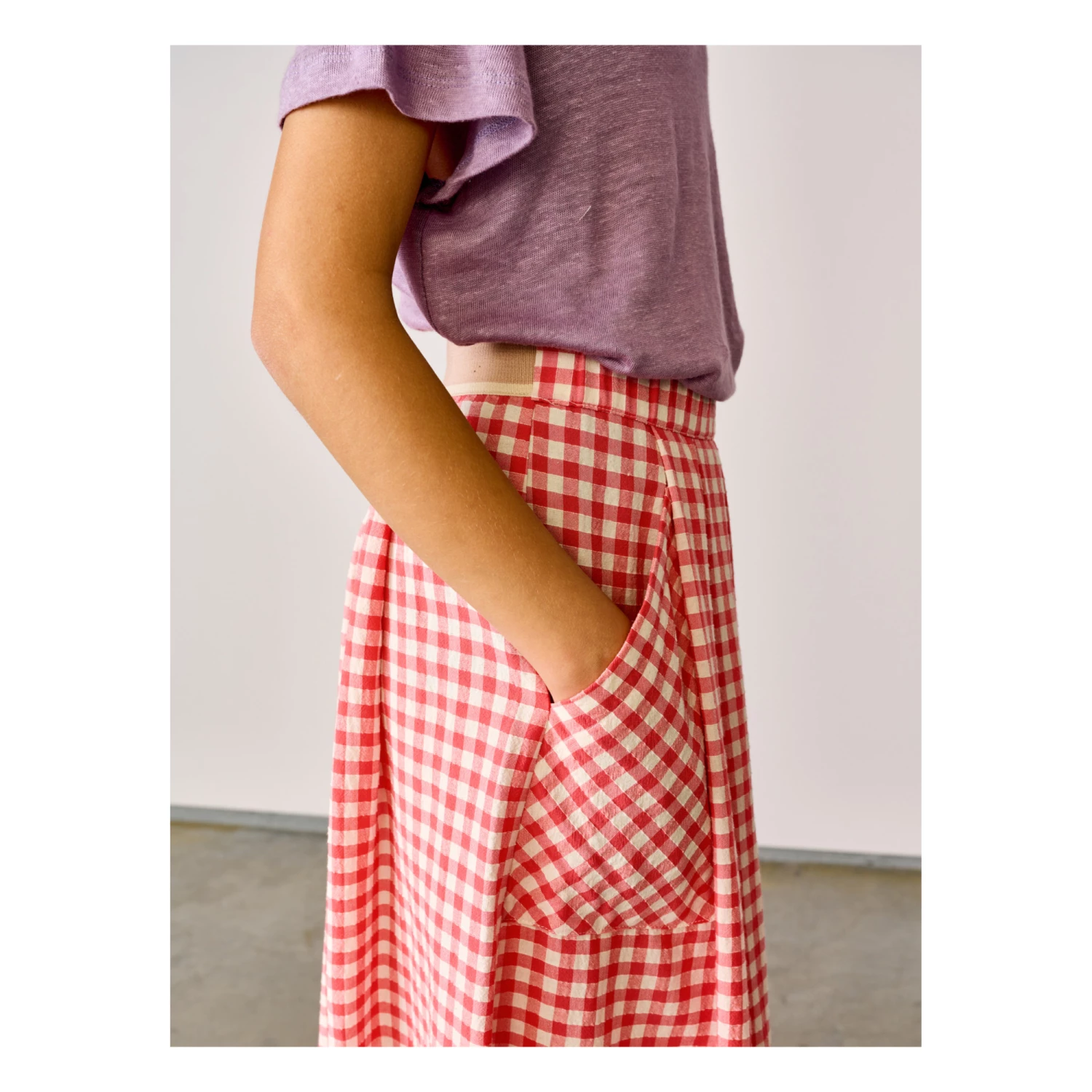 - Garment pulls on, Gingham print