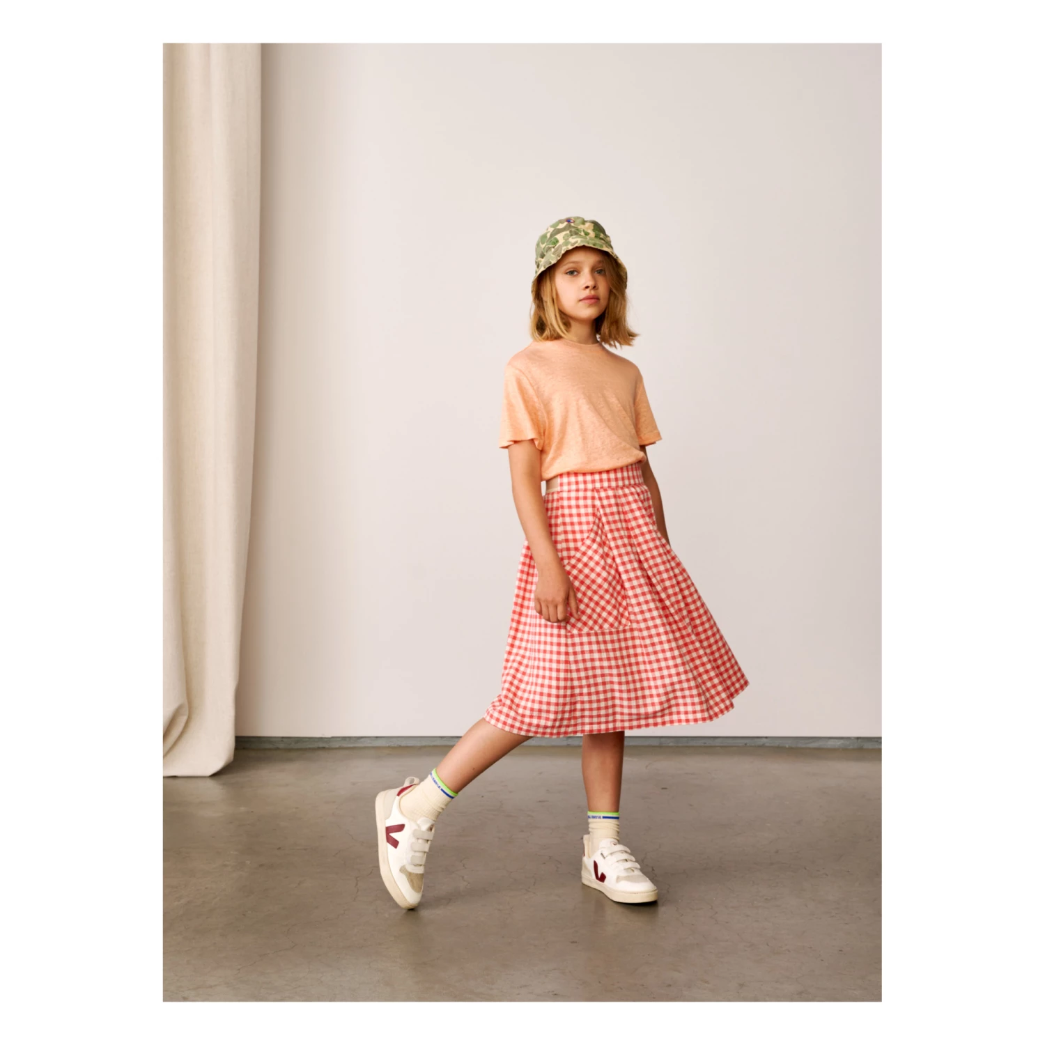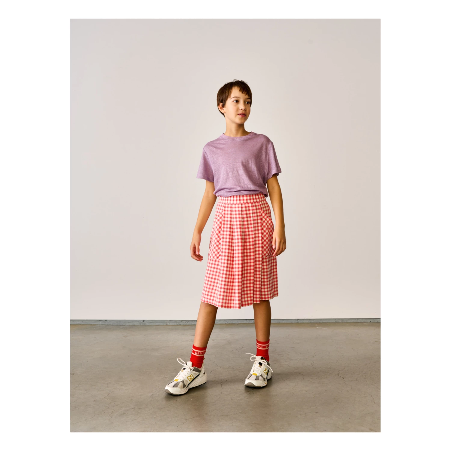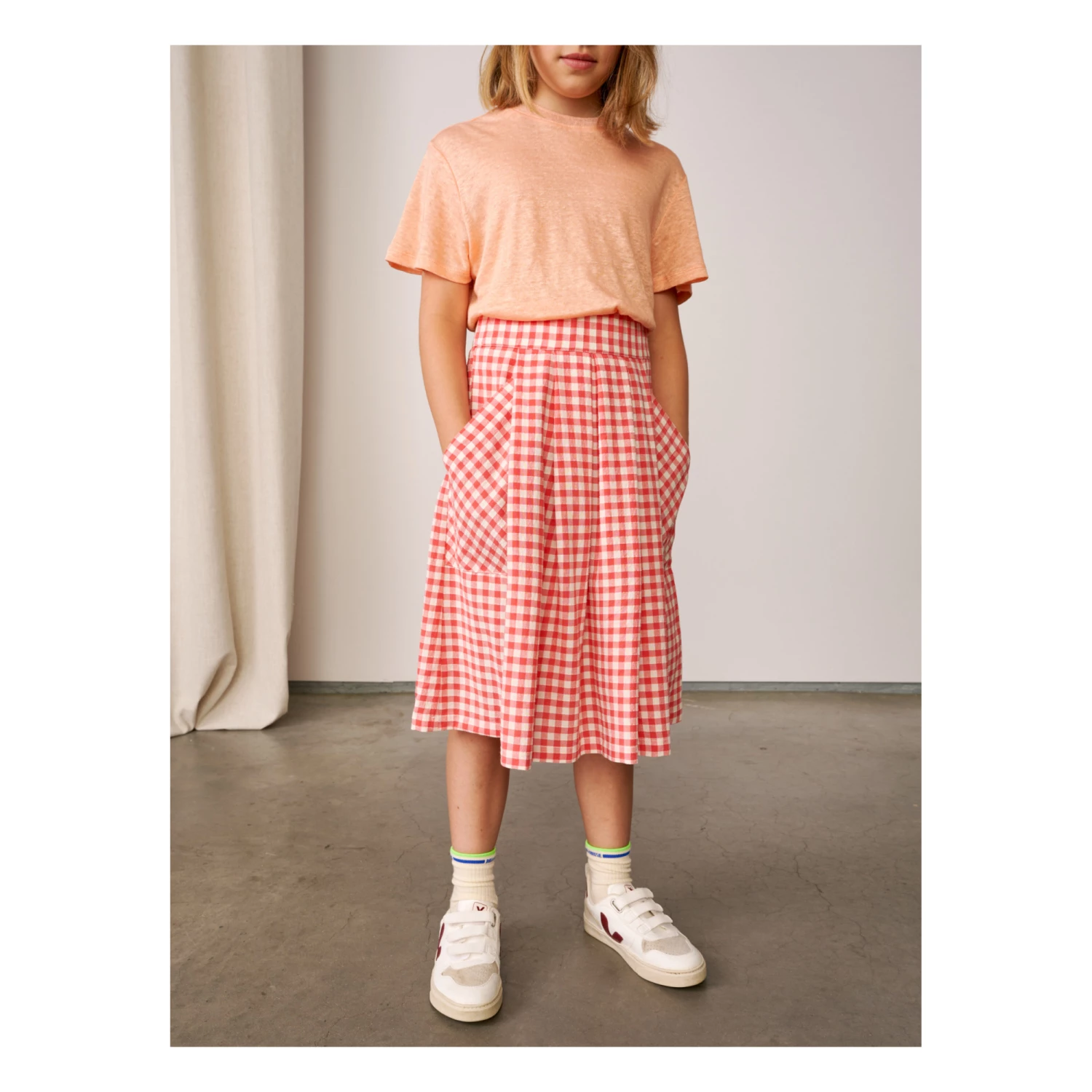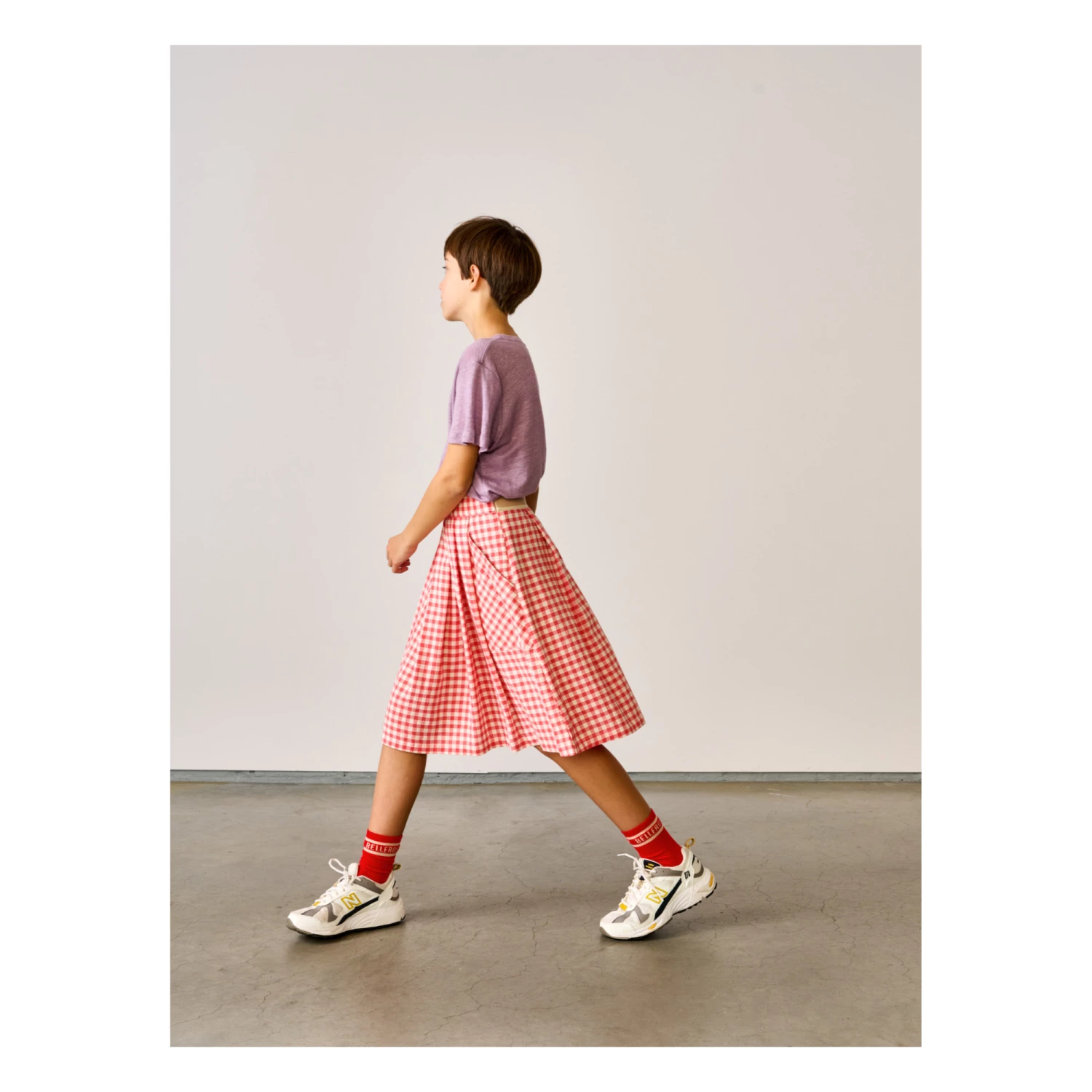 - Garment pulls on, Gingham print