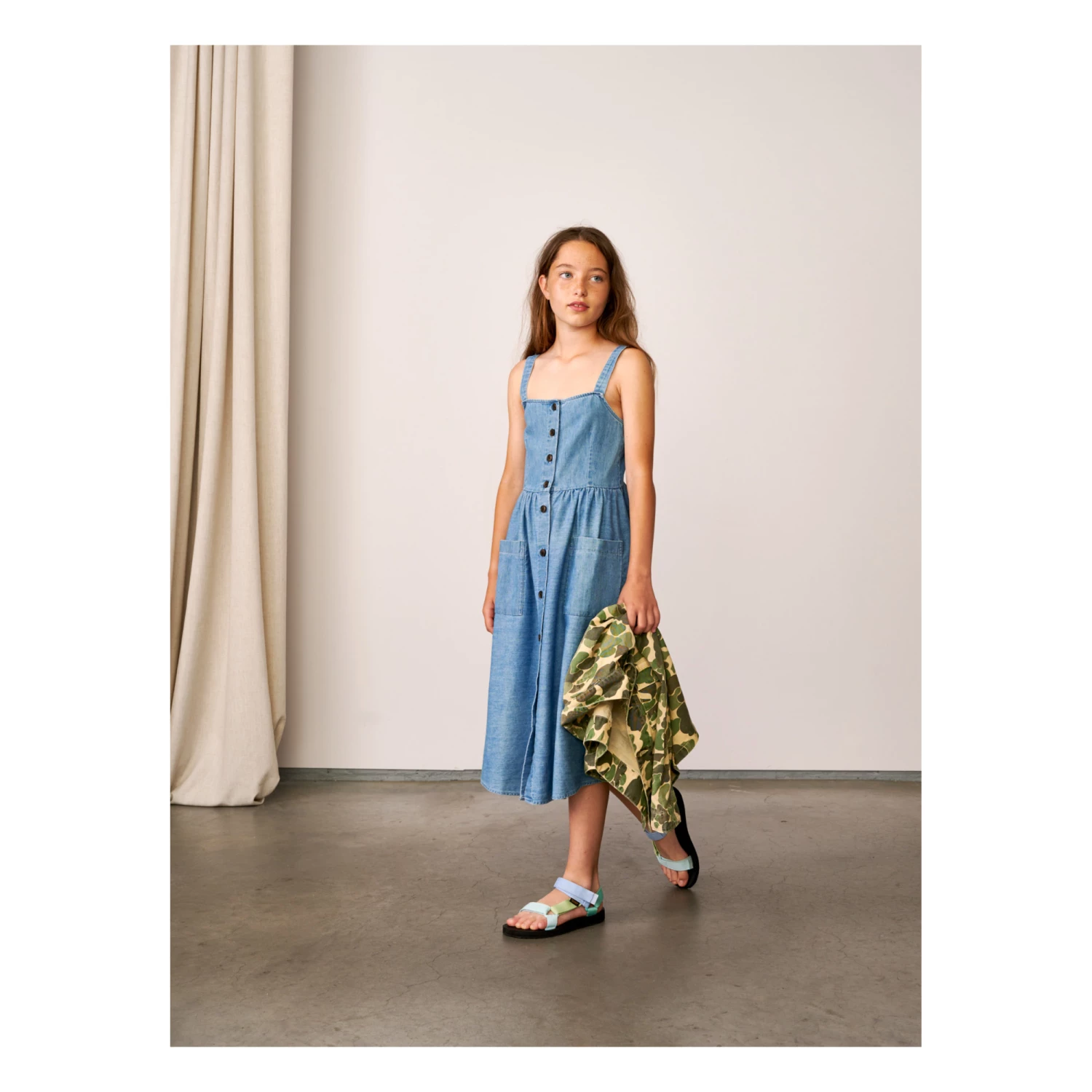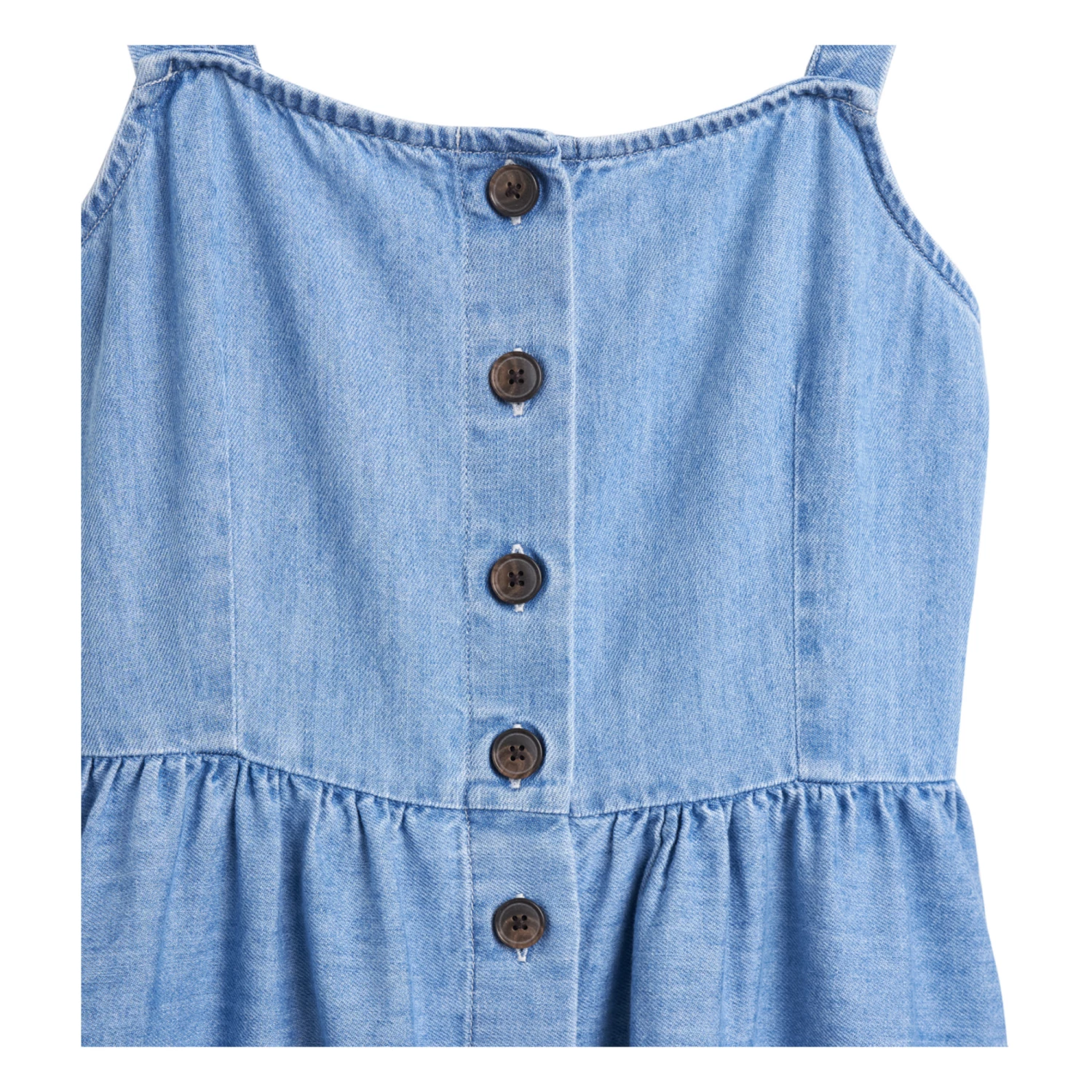 - Dart(s), Top stitched, Front patch pocket(s), Gathered at the waist, Thin straps