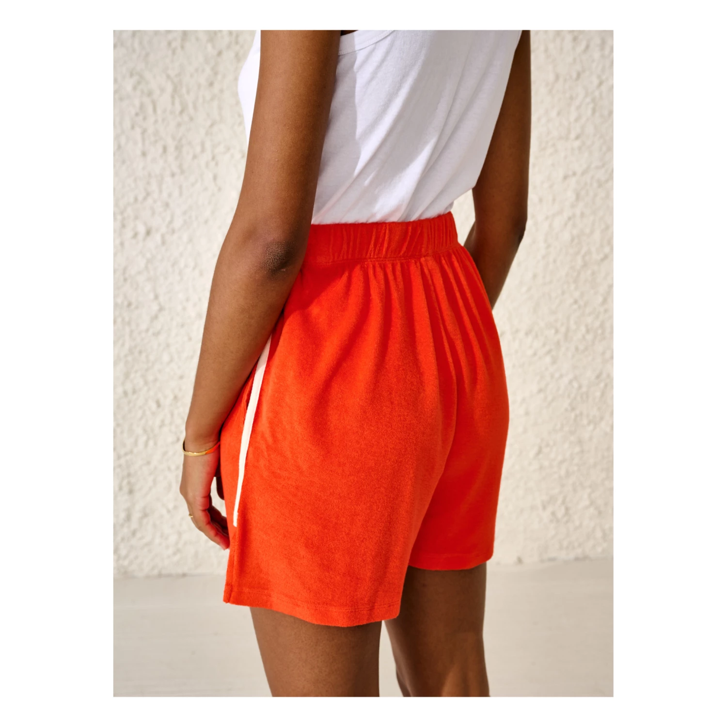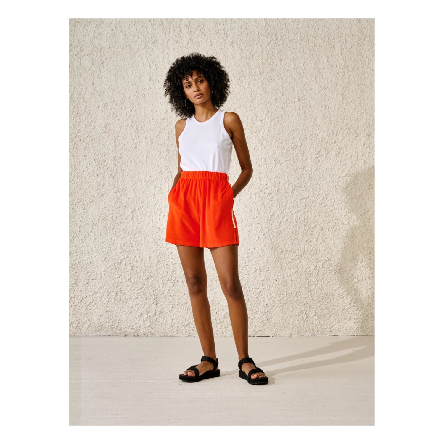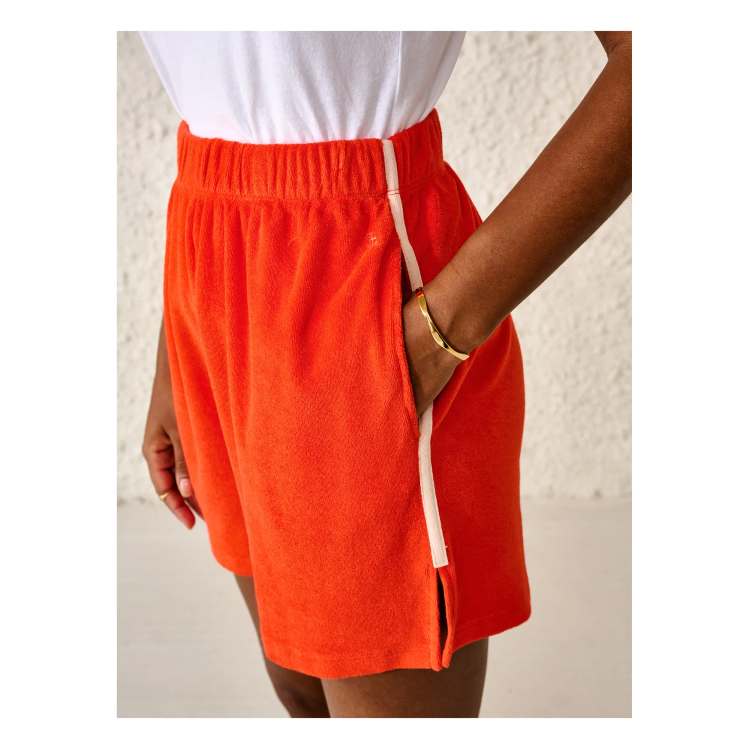 - Slit side(s), Top stitched, Embroidered logo, Contrasting logo, Side pockets, Elasticated waist, Contrasting edges