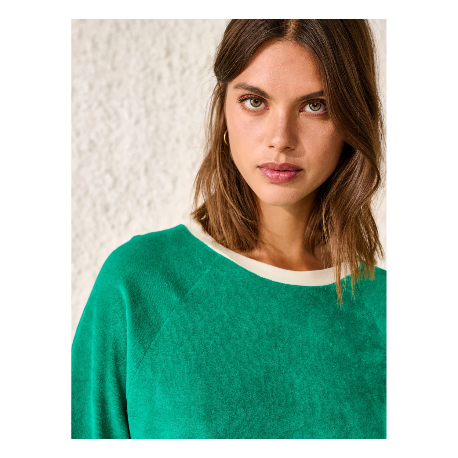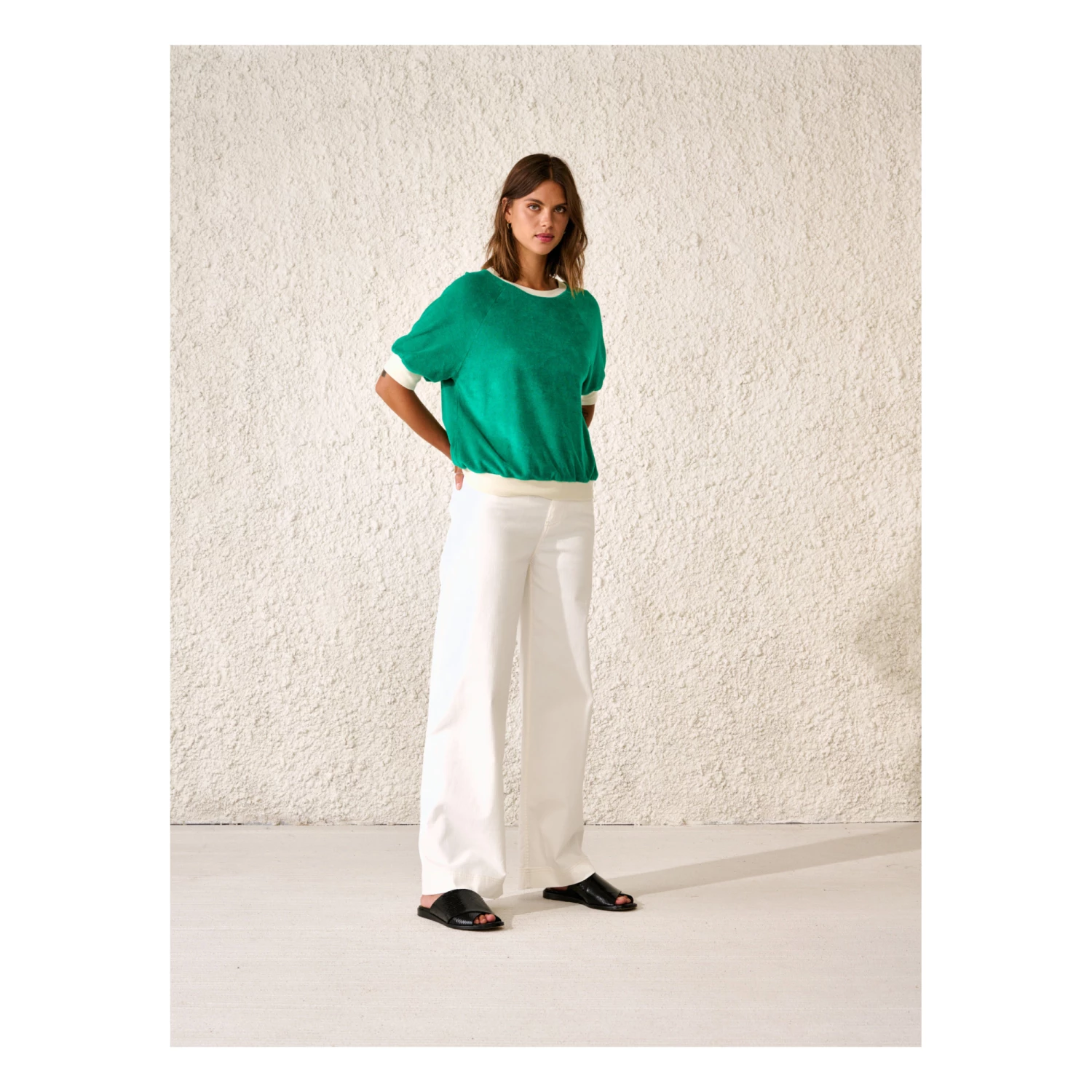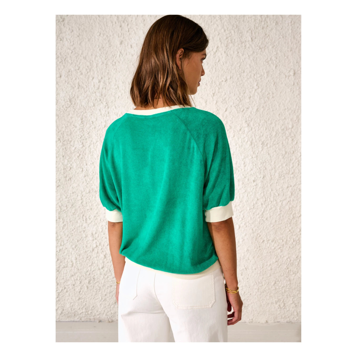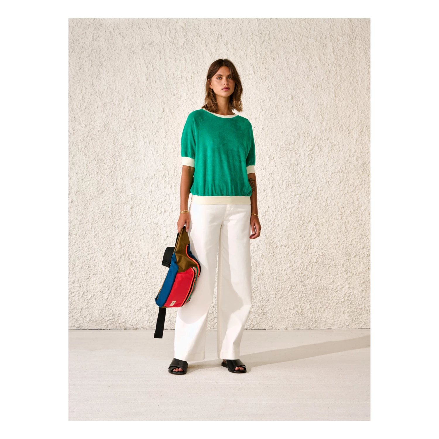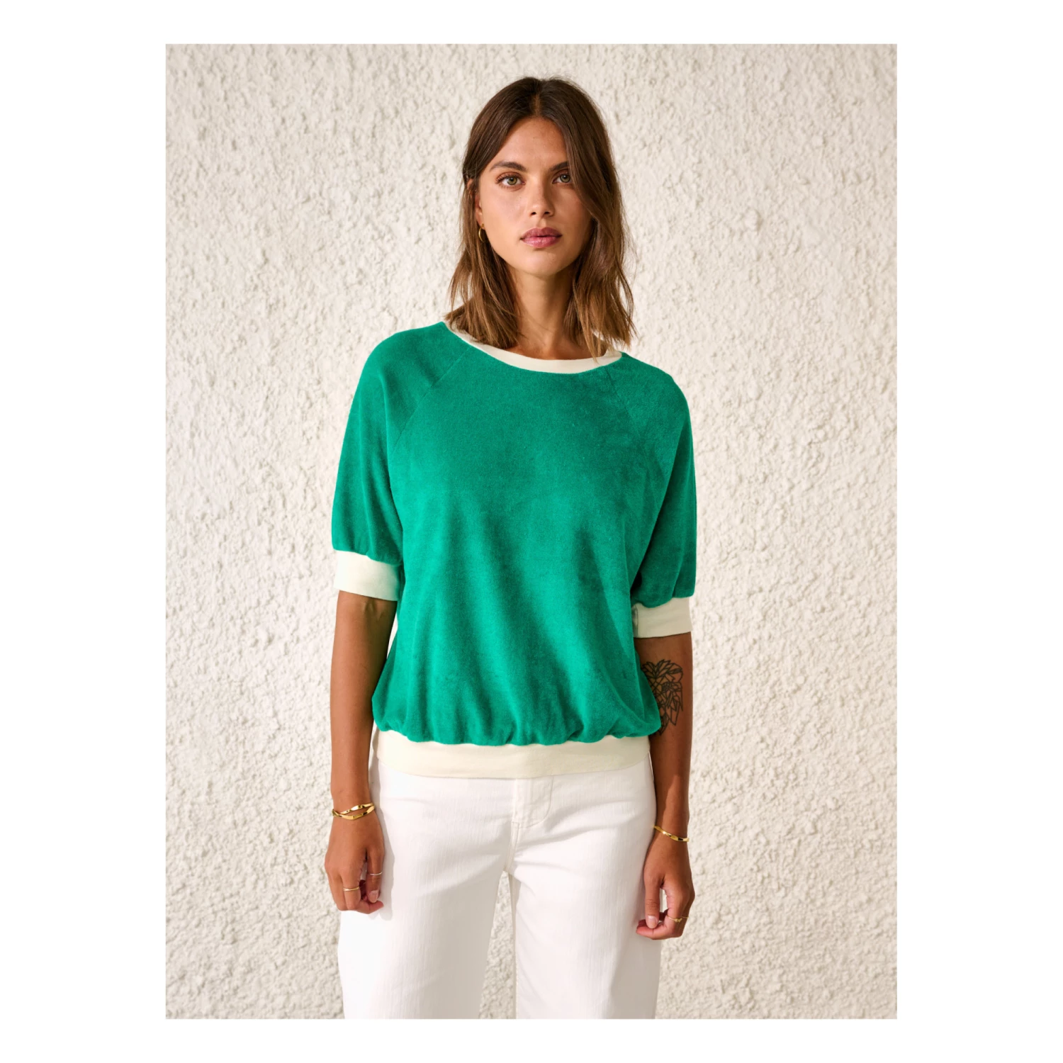 - Crew neck, Short sleeves, Raglan sleeve, Ribbed edges, Contrasting edges, Gathered at the waist