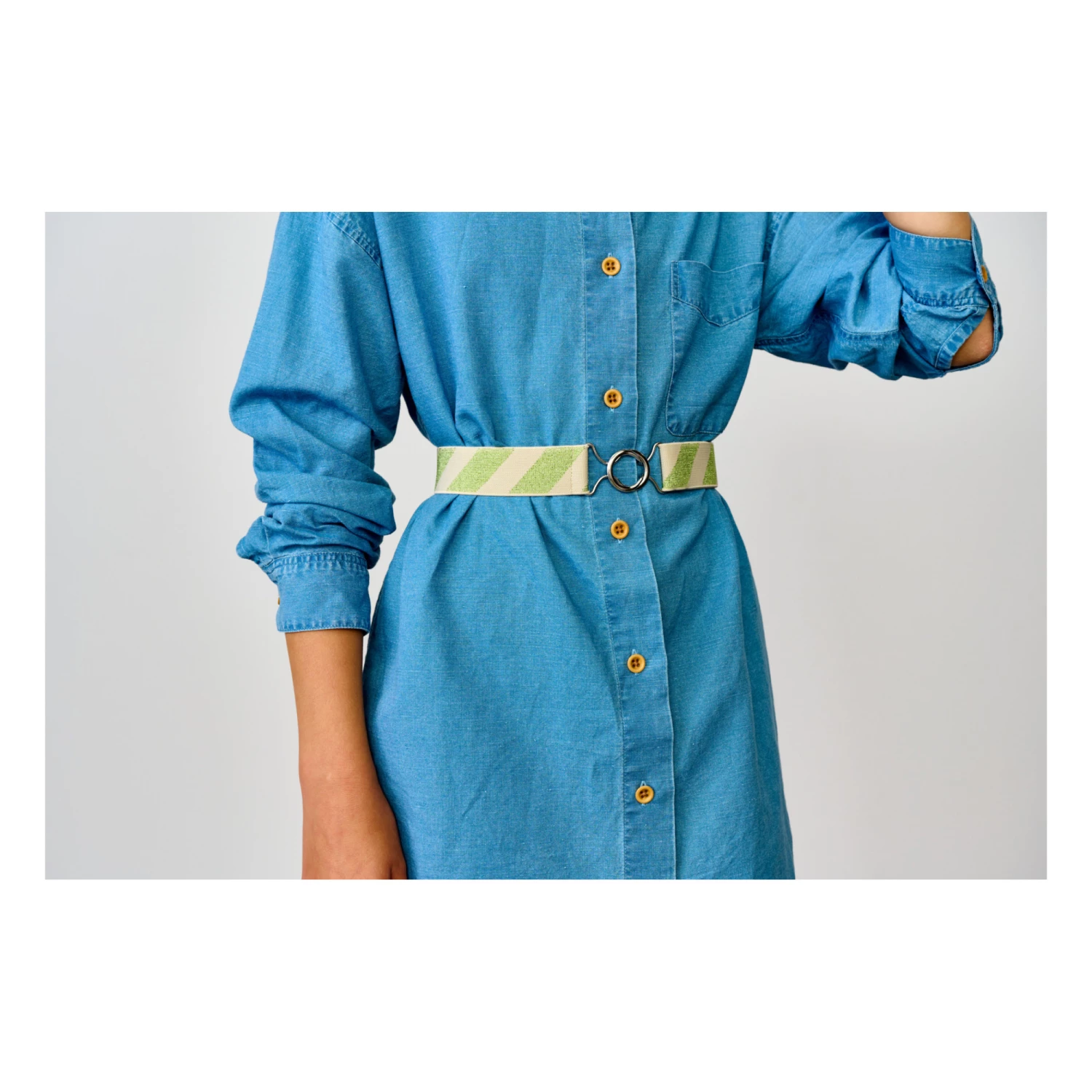 - Metal buckle(s), Stripe print