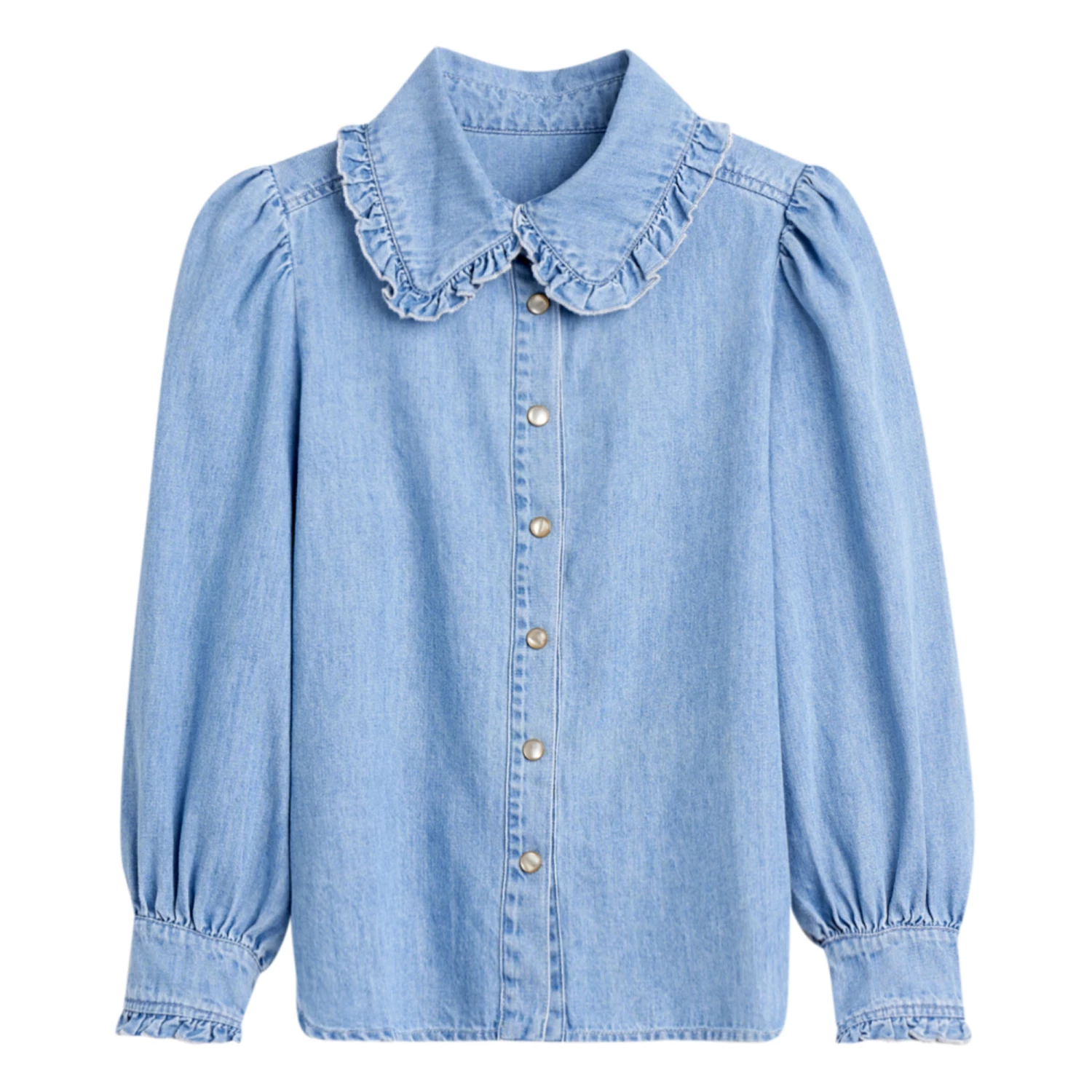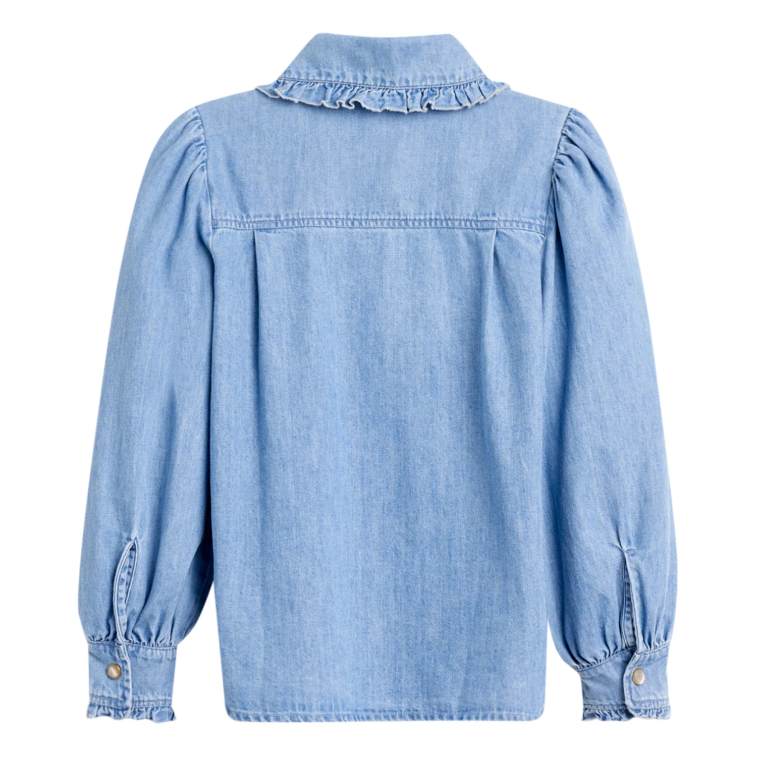 - Tightened at the wrists, Gathered armholes, Balloon sleeves, Long sleeves, Pleated back, Buttoned cuffs, Shirt cuffs, Frill cuffs, Peter Pan collar, Frilled collar