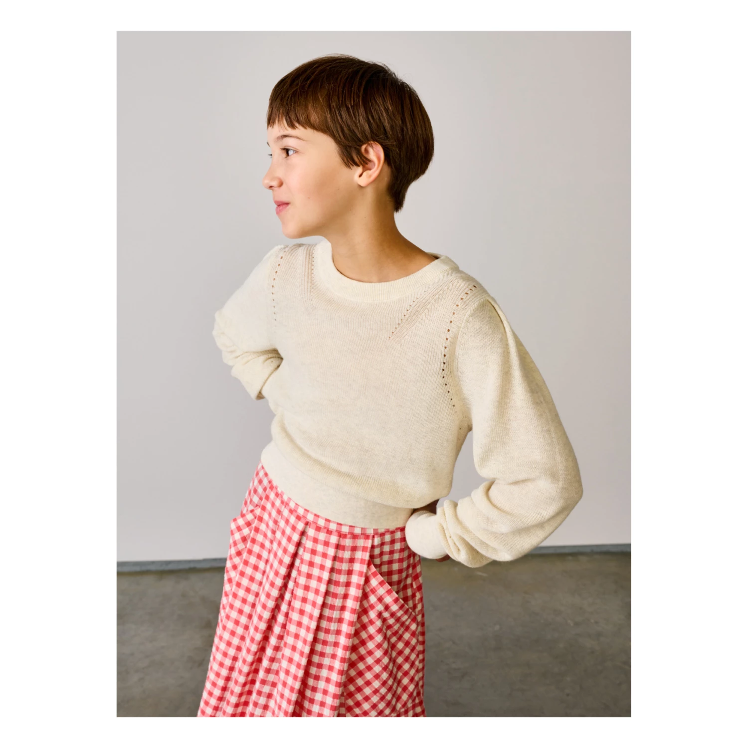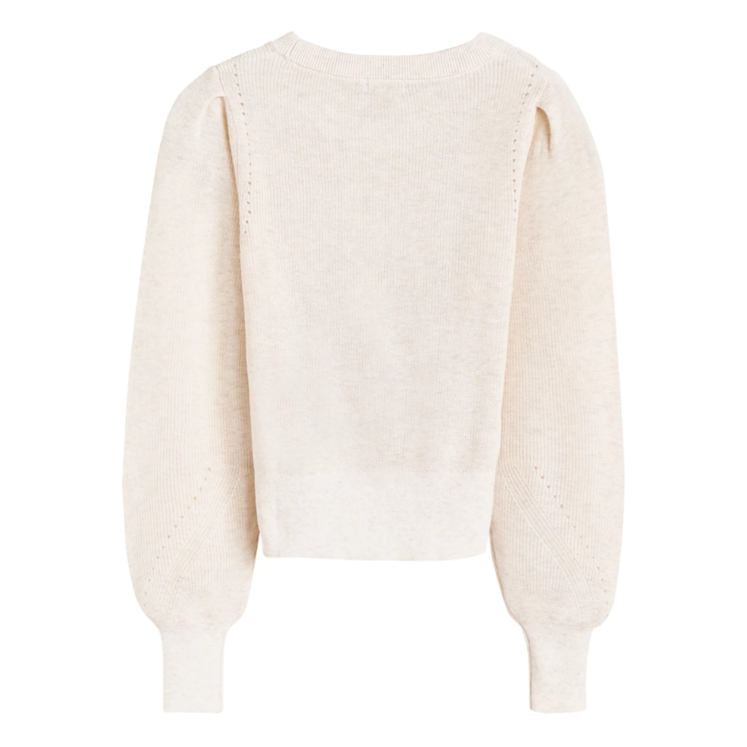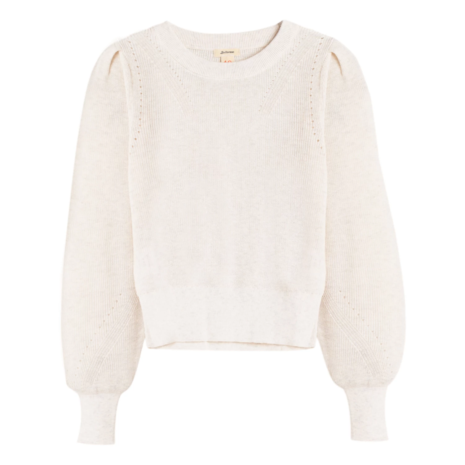 - Tightened at the wrists, Ribbed, Gathered armholes, Crew neck, Balloon sleeves, Long sleeves, Ribbed cuffs, Close-fitting at bottom, Decorative knit, Openwork knit, Ribbed neckband
