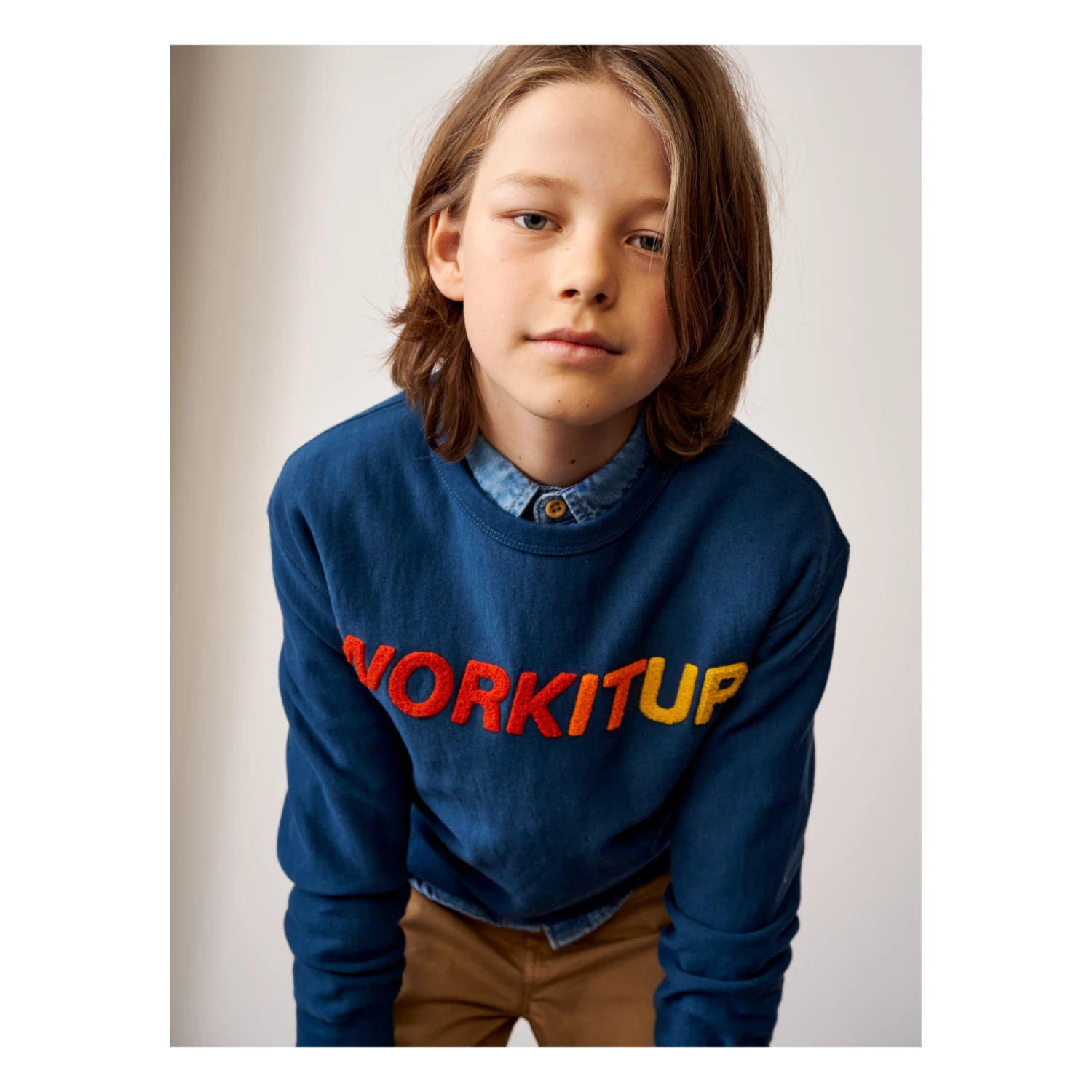 - Crew neck, Top stitched, Long sleeves, Ribbed cuffs, Close-fitting at bottom, Chenille embroidery, Ribbed neckband, Comfortable