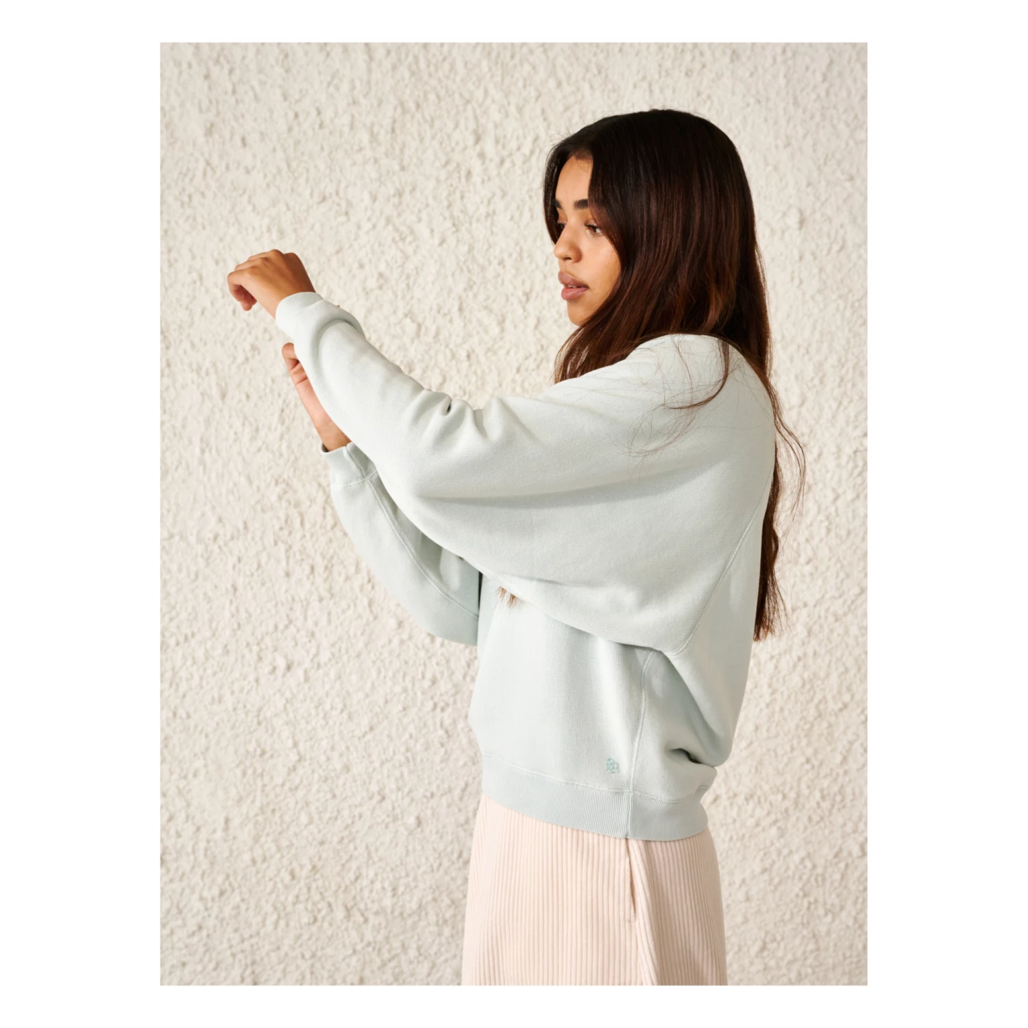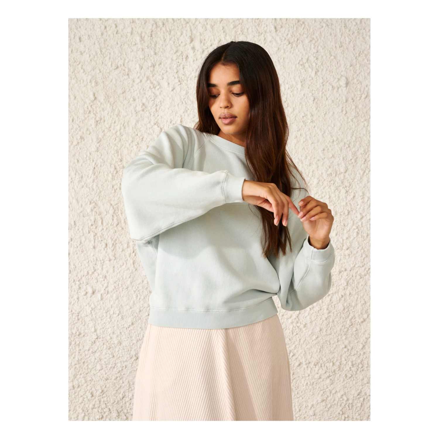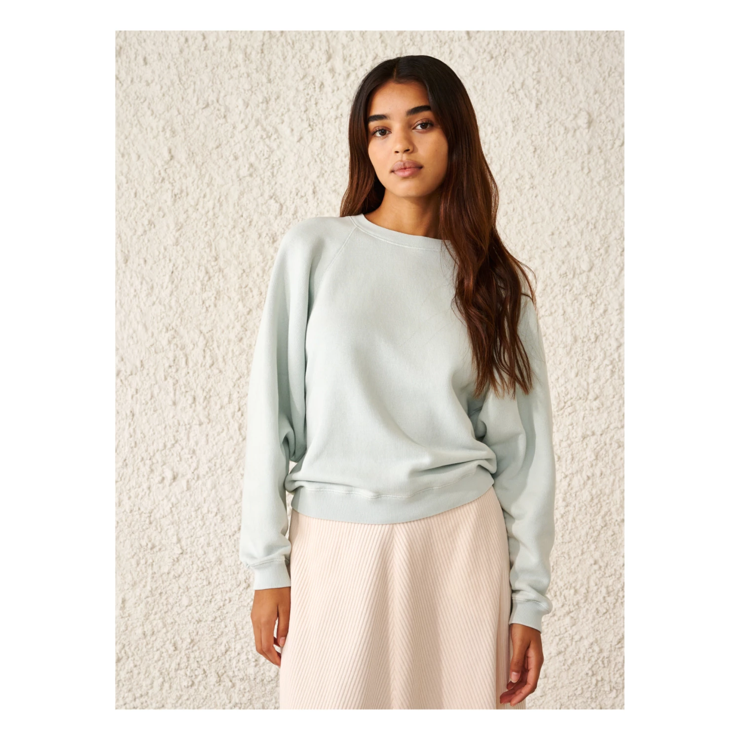 - Stonewashed, Crew neck, Top stitched, Embroidered logo, Tone-on-tone logo, Long sleeves, Raglan sleeve, Ribbed cuffs, Wide armholes, Ribbed neckband