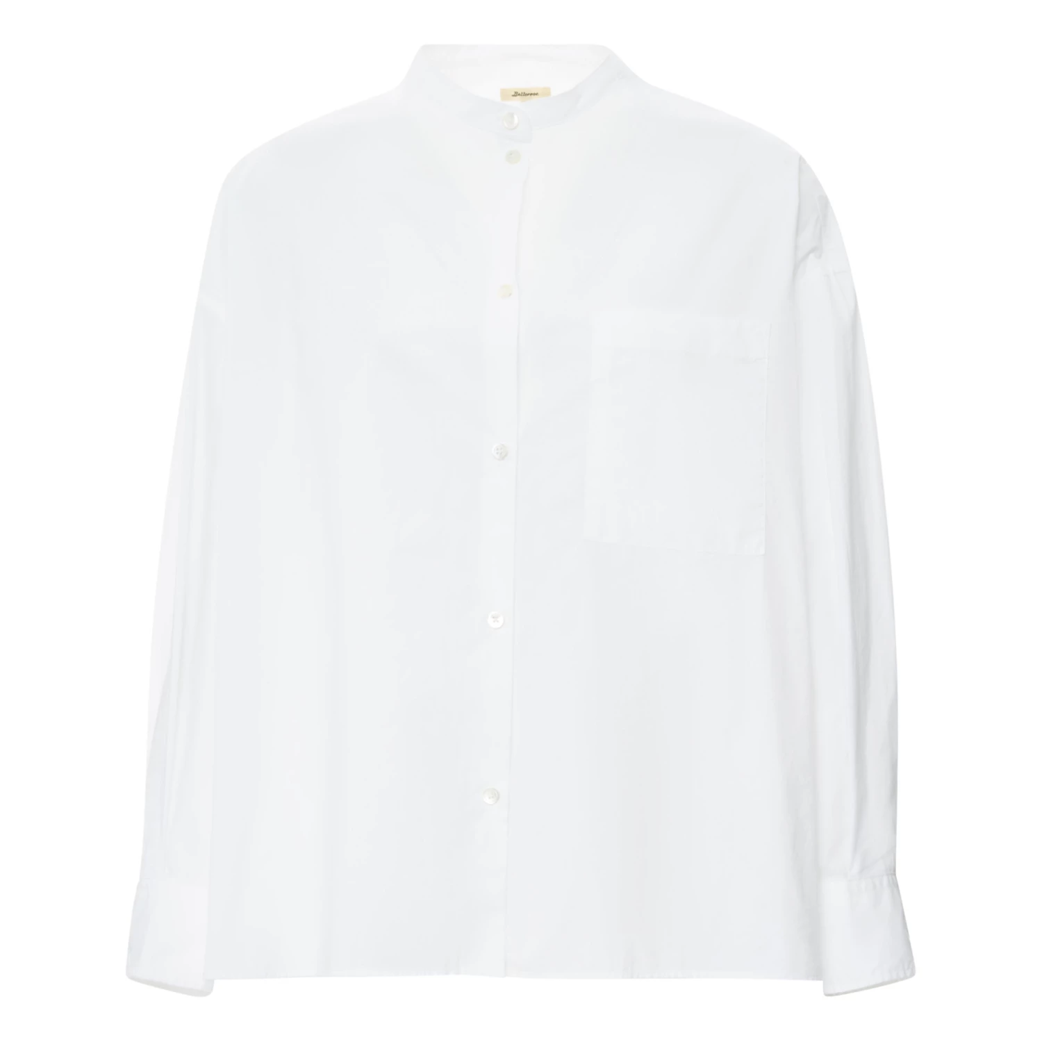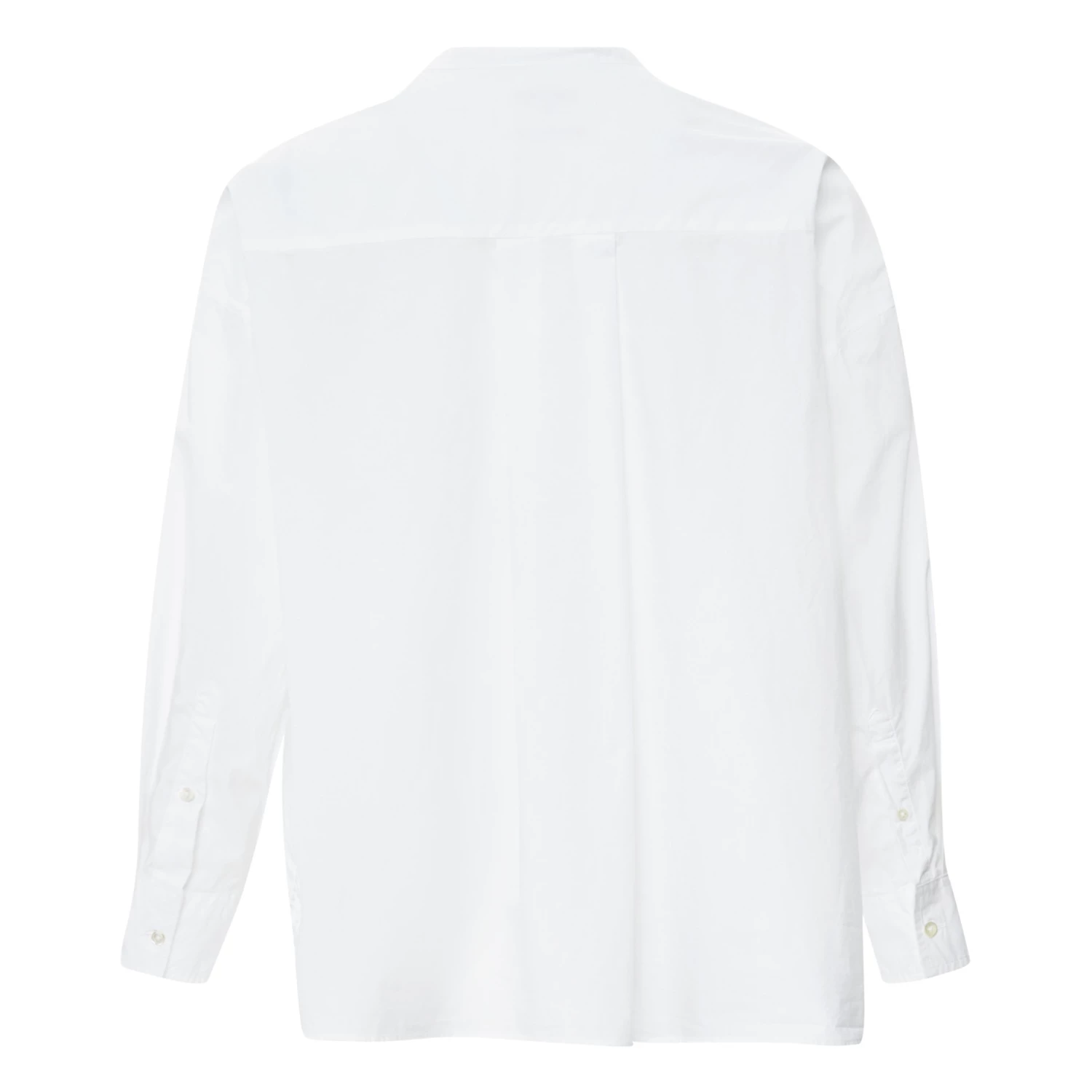 - Low armholes, Crew neck, Long sleeves, Longer at the back, Breast pocket(s), Shirt cuffs, Inverted pleats