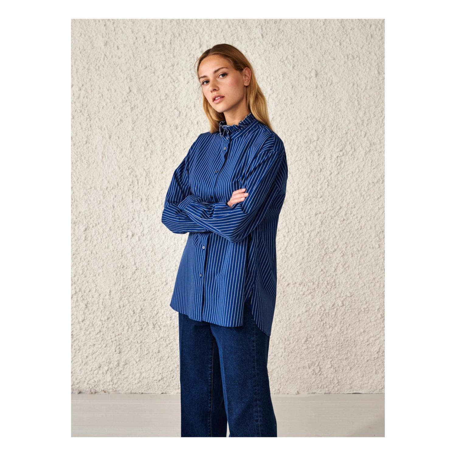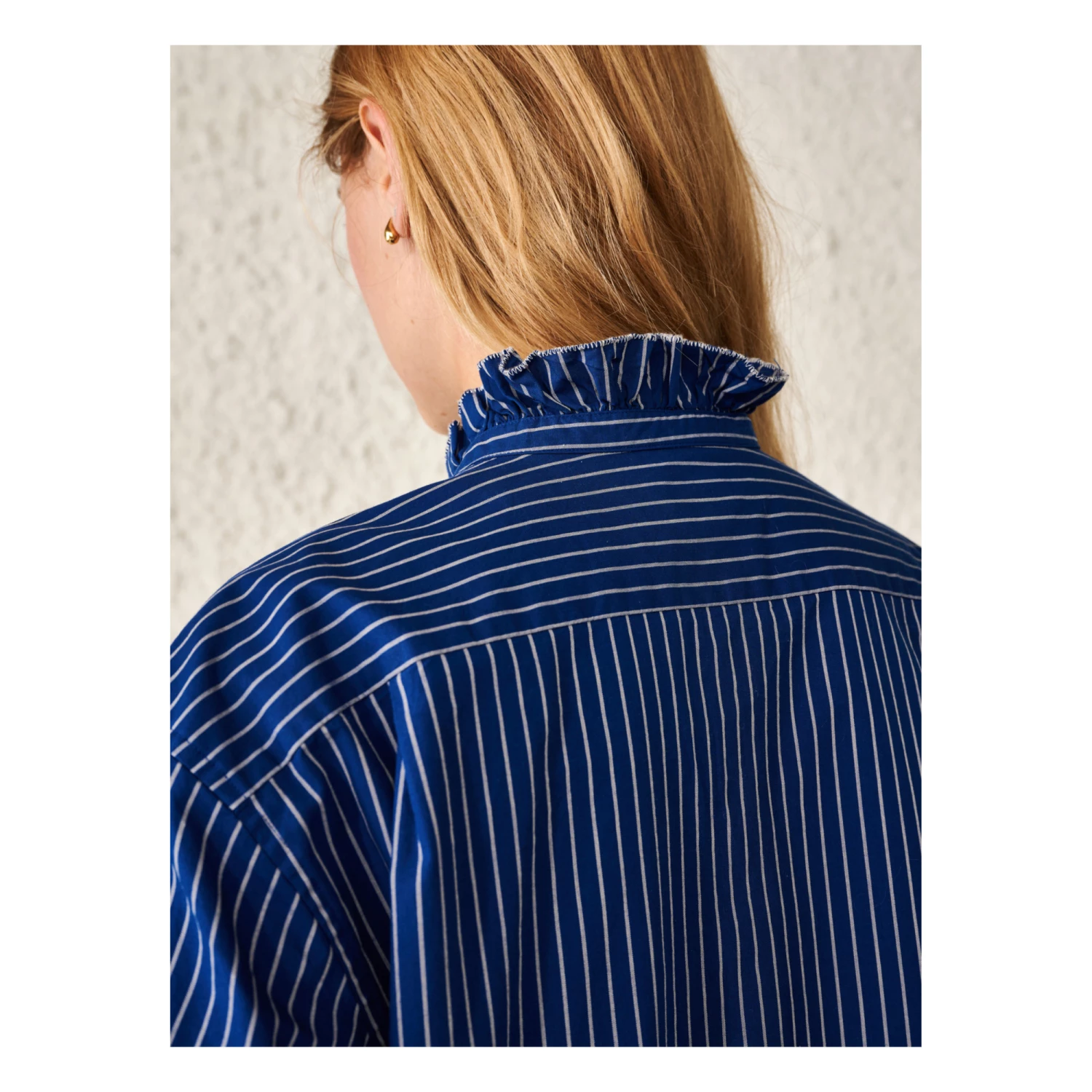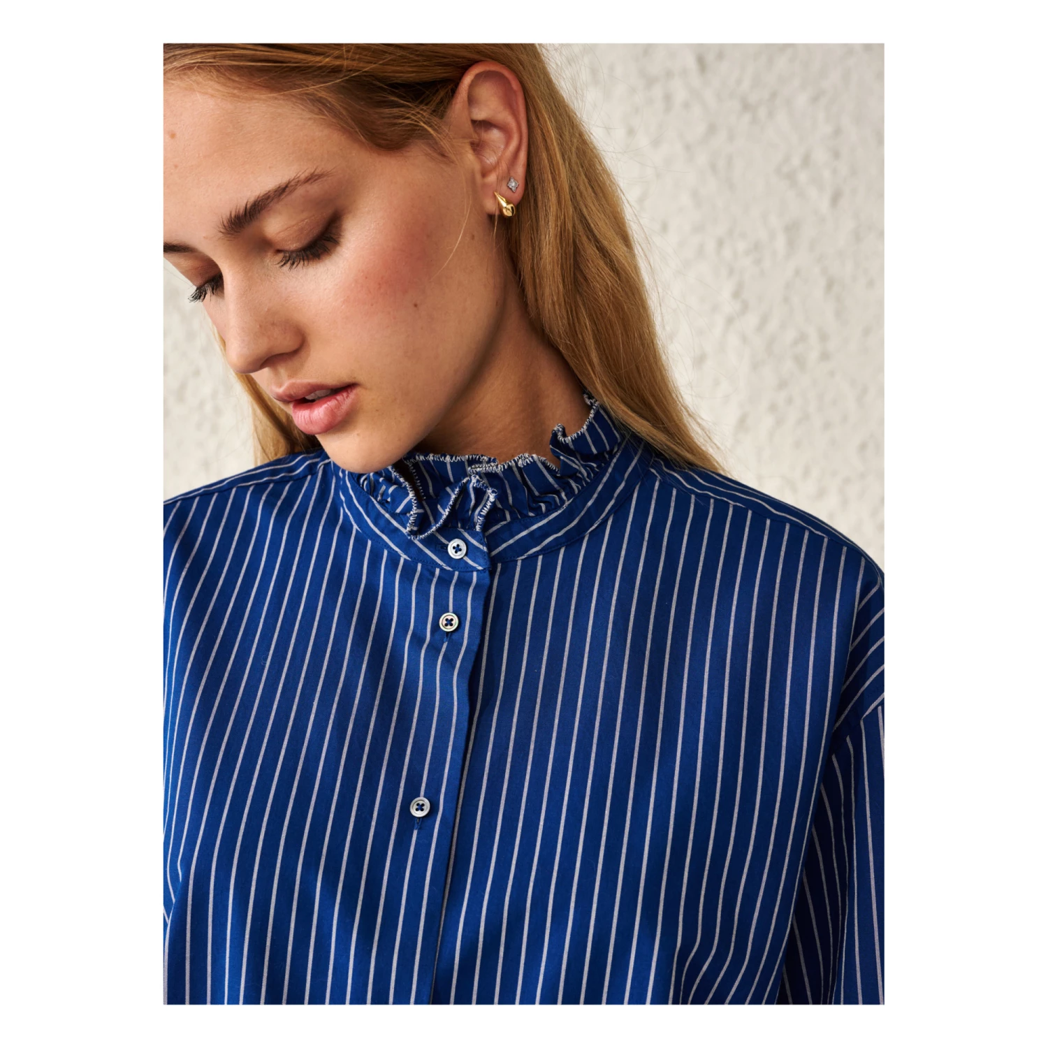 - Low armholes, Rounded at the sides, Slit side(s), Long sleeves, Decorative edges, Buttoned cuffs, Frilled collar