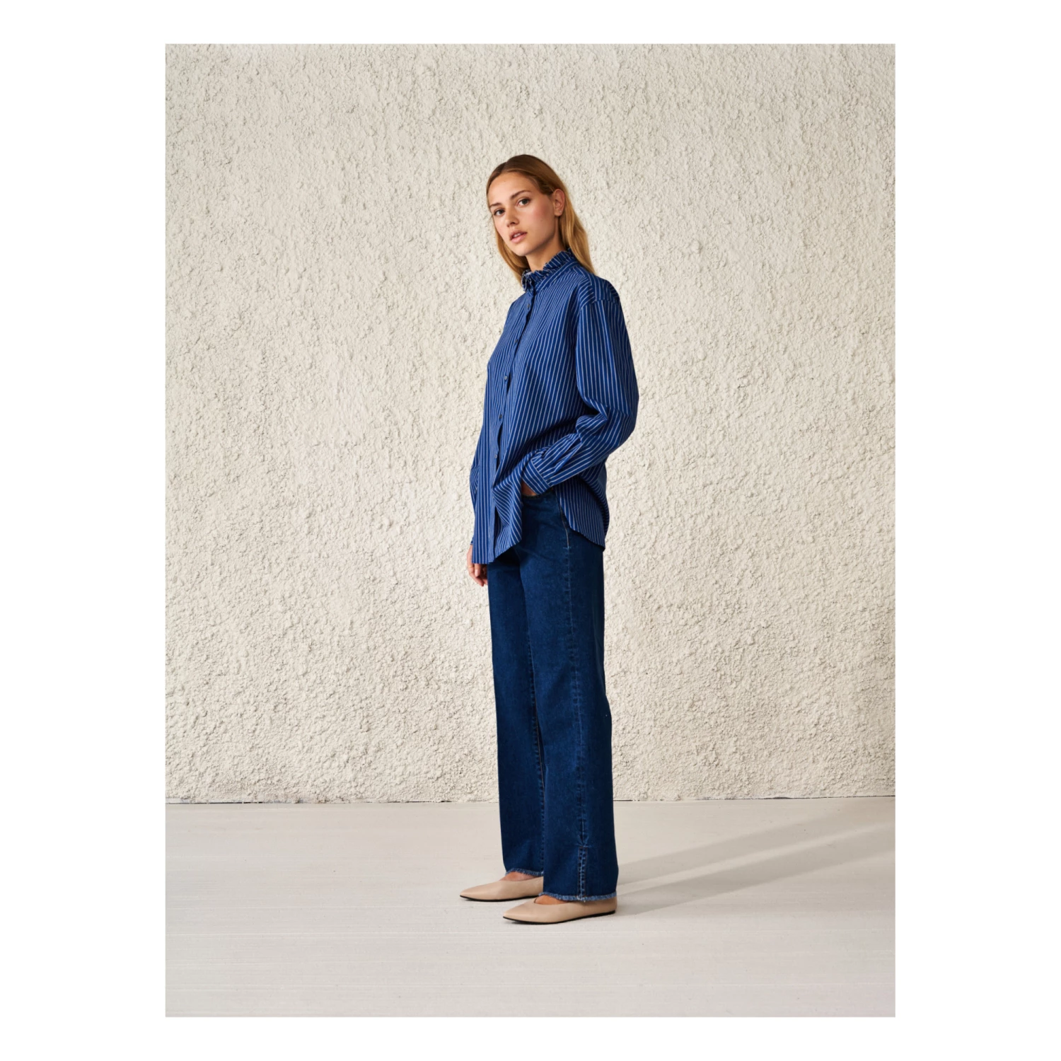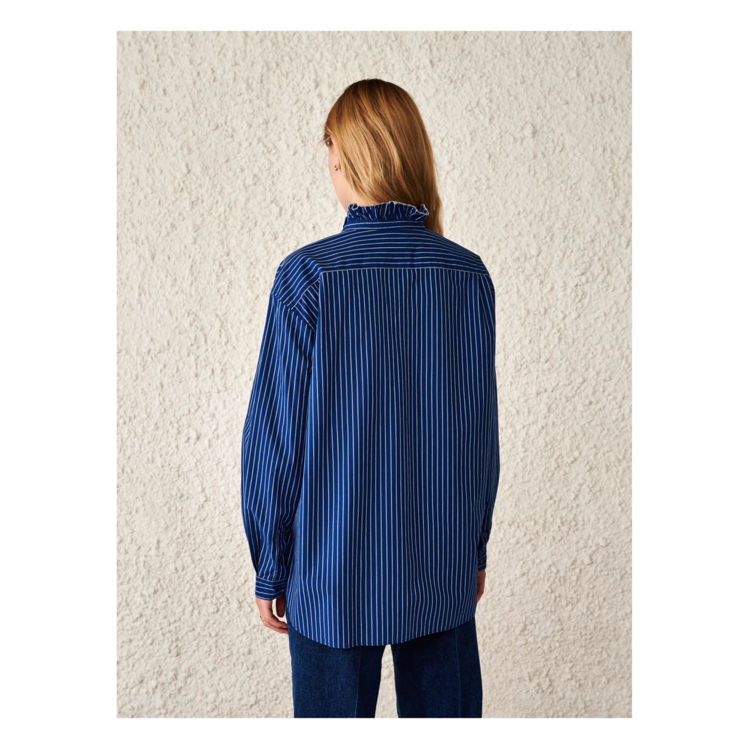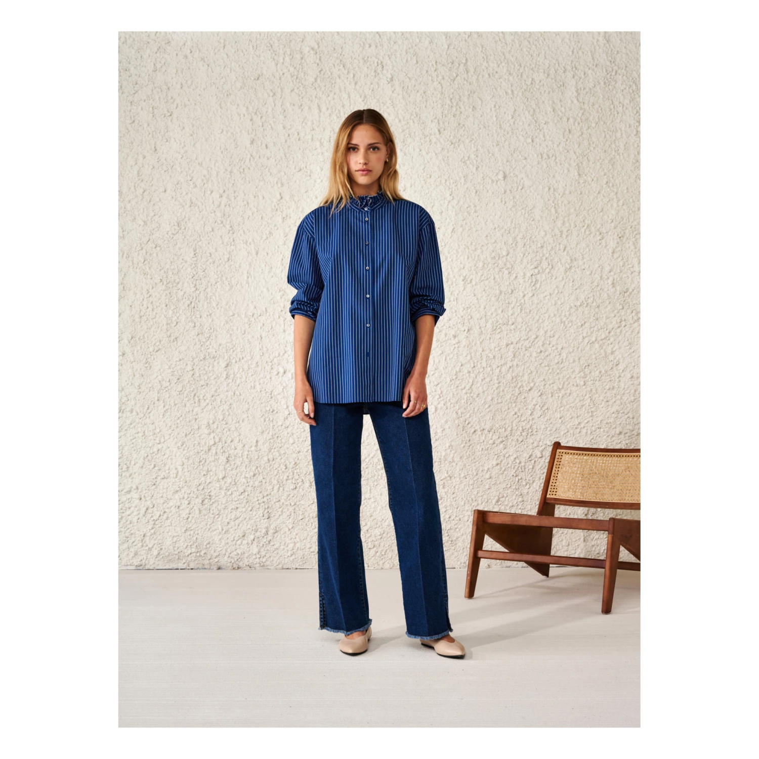 - Low armholes, Rounded at the sides, Slit side(s), Long sleeves, Decorative edges, Buttoned cuffs, Frilled collar