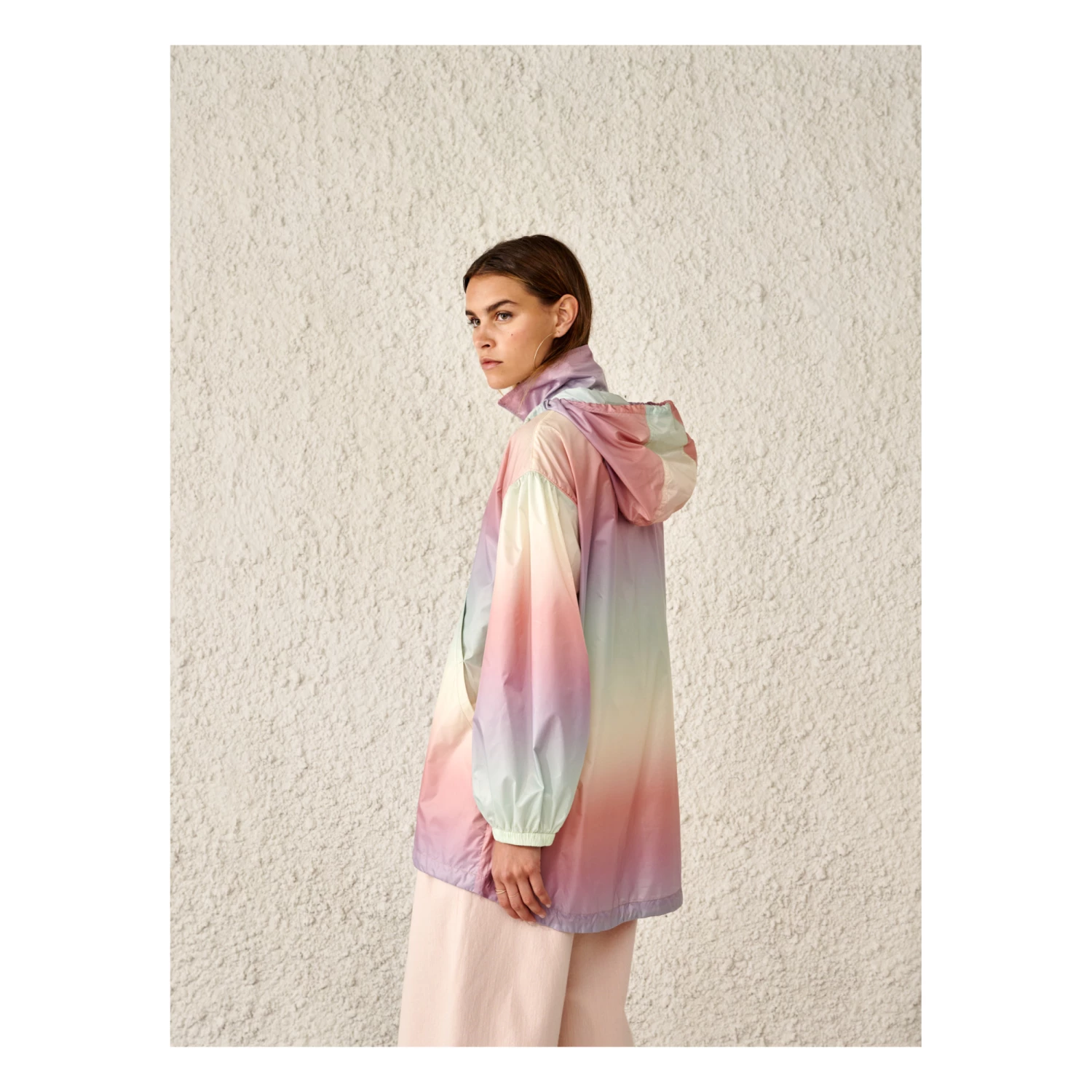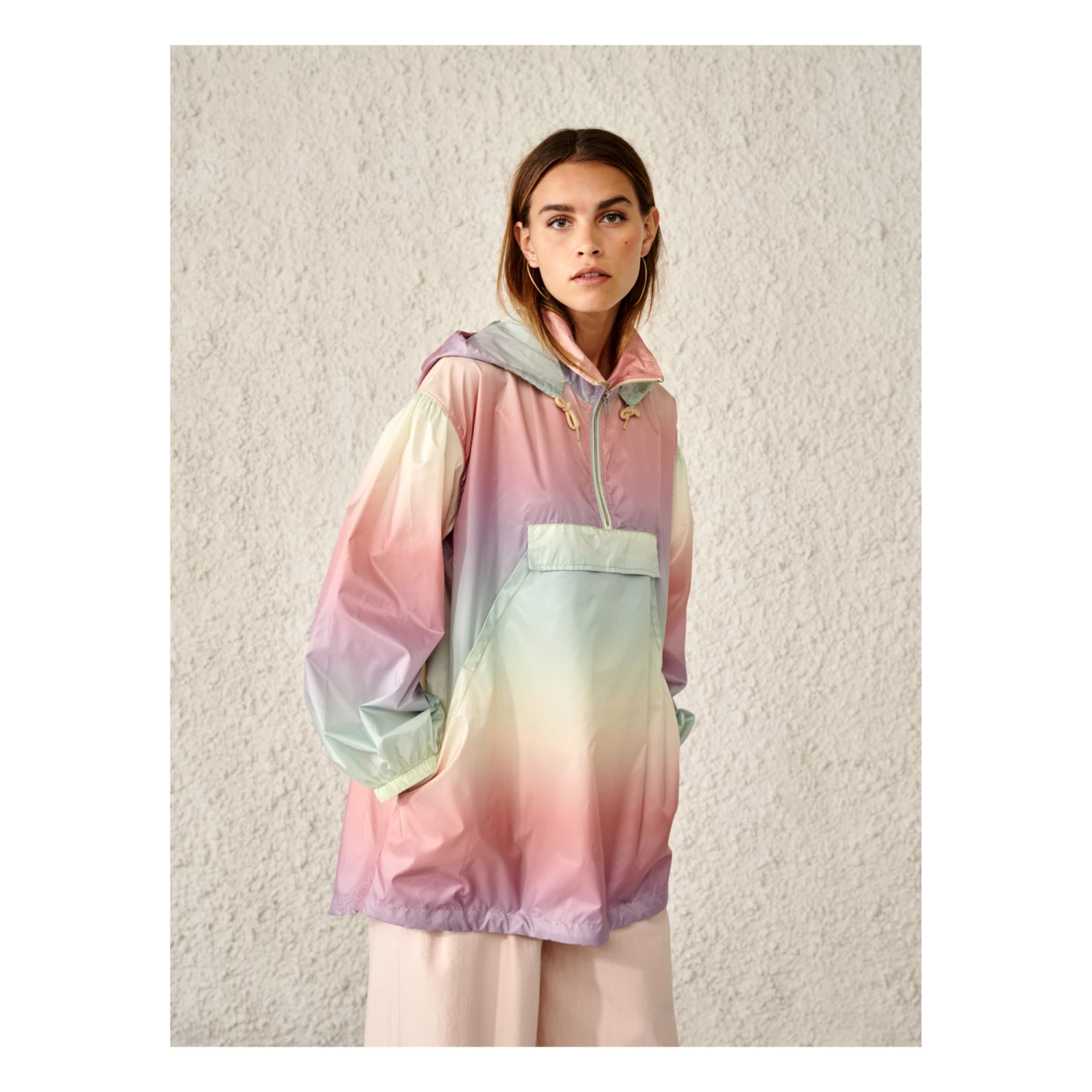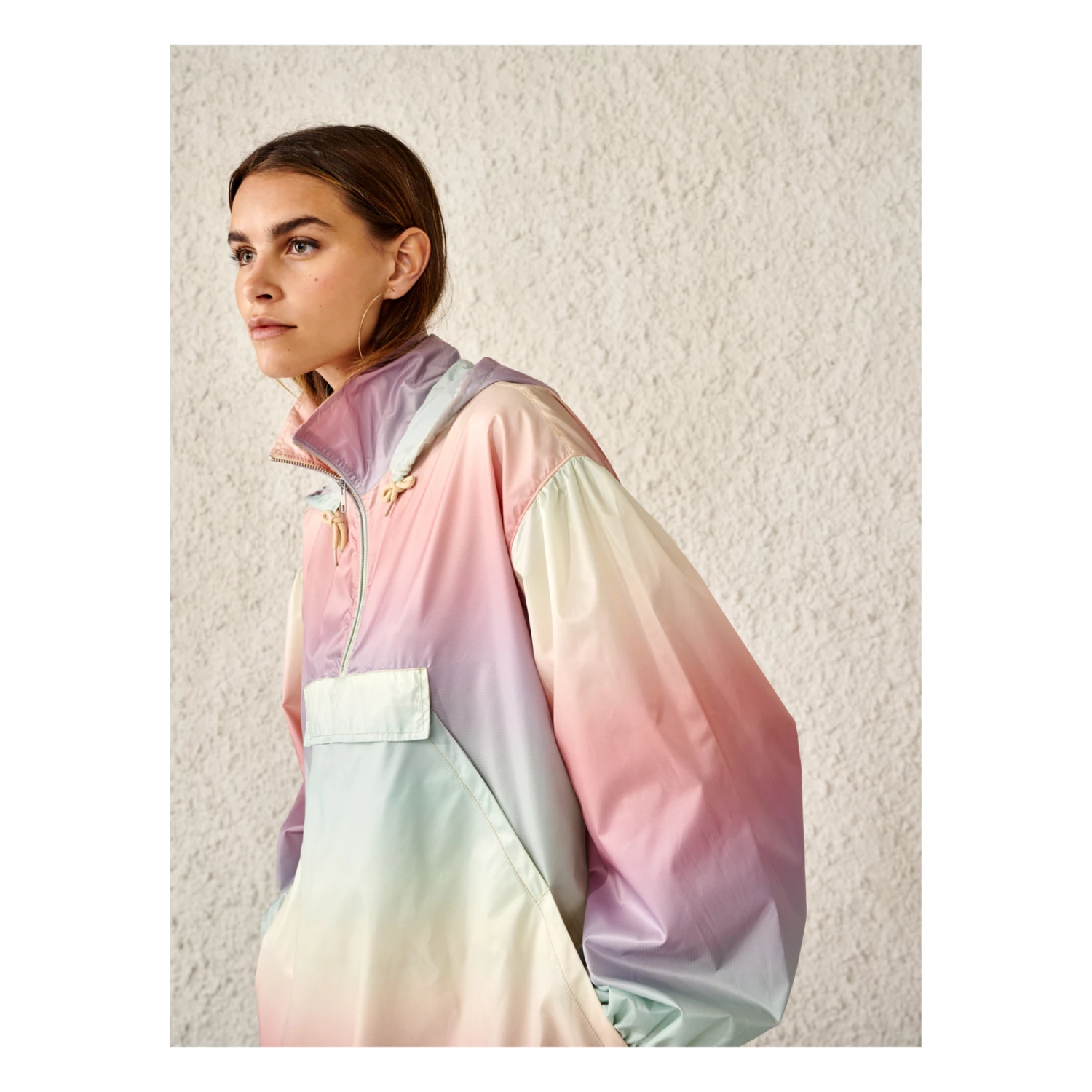 - Low armholes, Top stitched, Long sleeves, Longer at the back, Flap pocket(s), Elastic cuffs, Side pockets, Wide sleeves, Hood with ties, Turtleneck