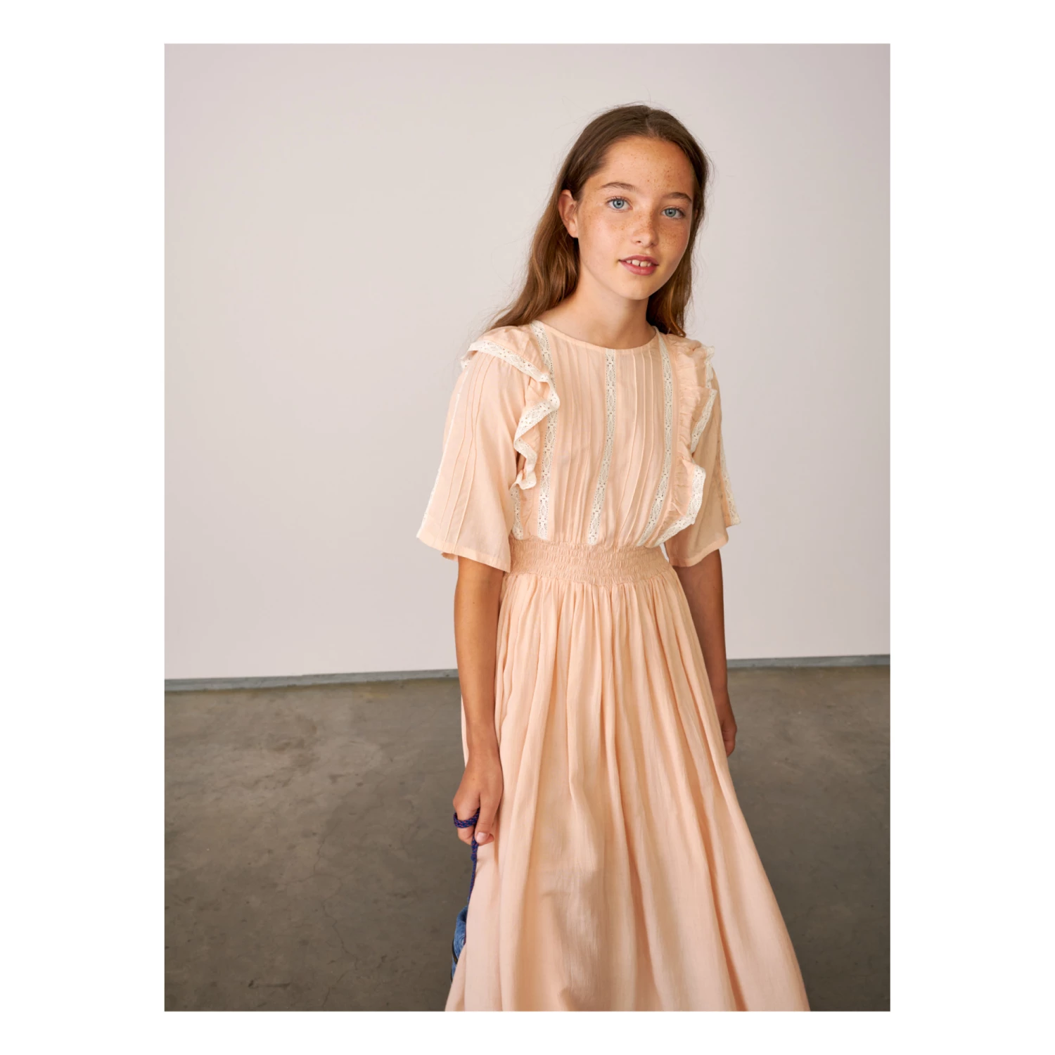 - Smocked, Lace details, Frilled yoke, Crew neck, Top stitched, Flowy, Slip, Lightweight and comfortable, Short sleeves, Dual-material, Pintucks, Elasticated waist, Wide sleeves, Openwork