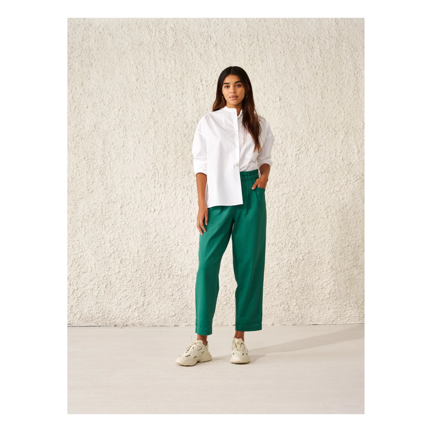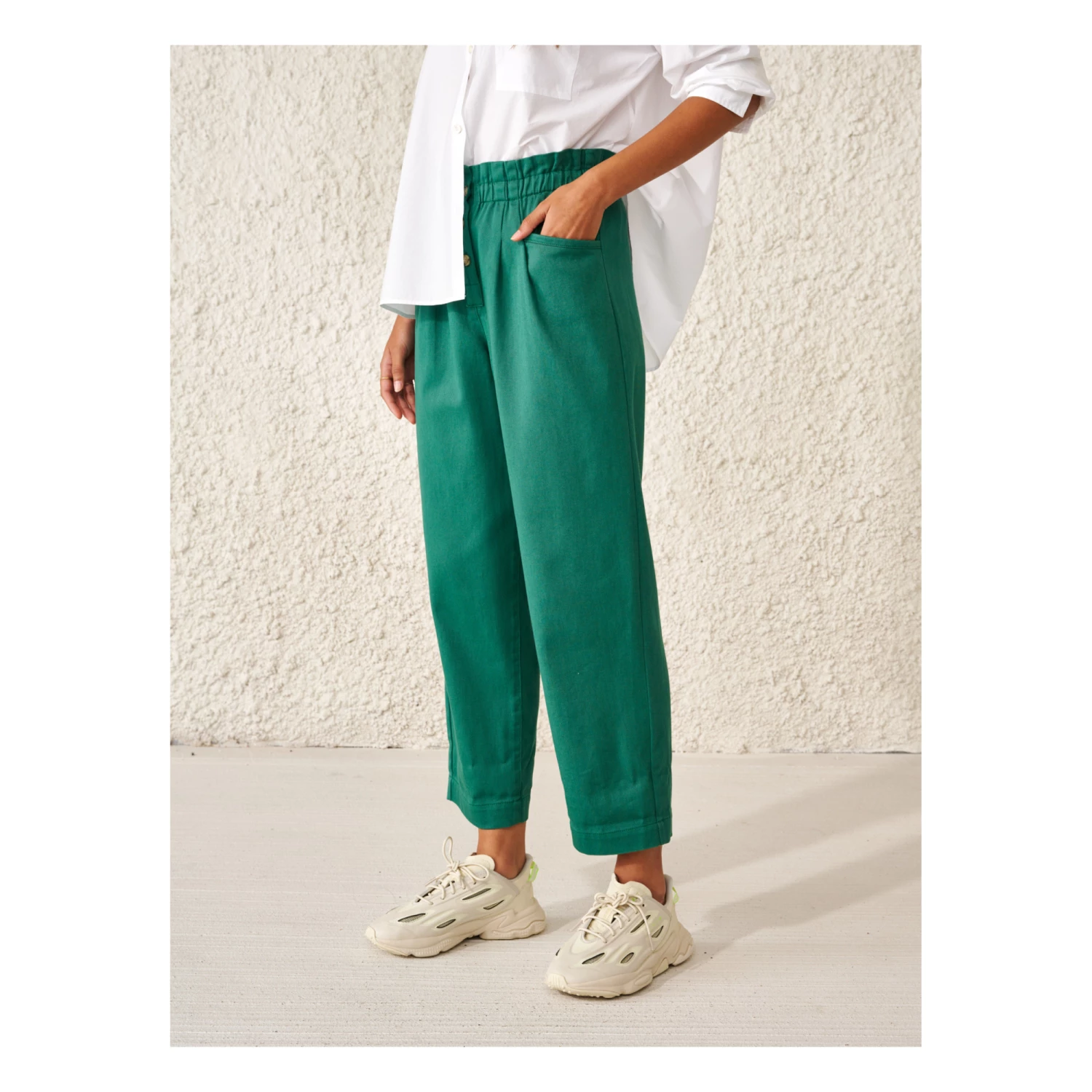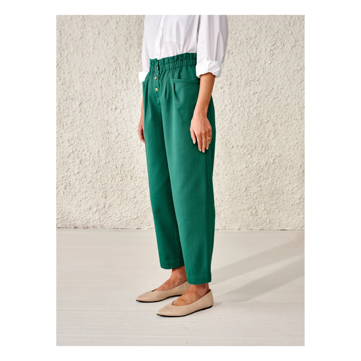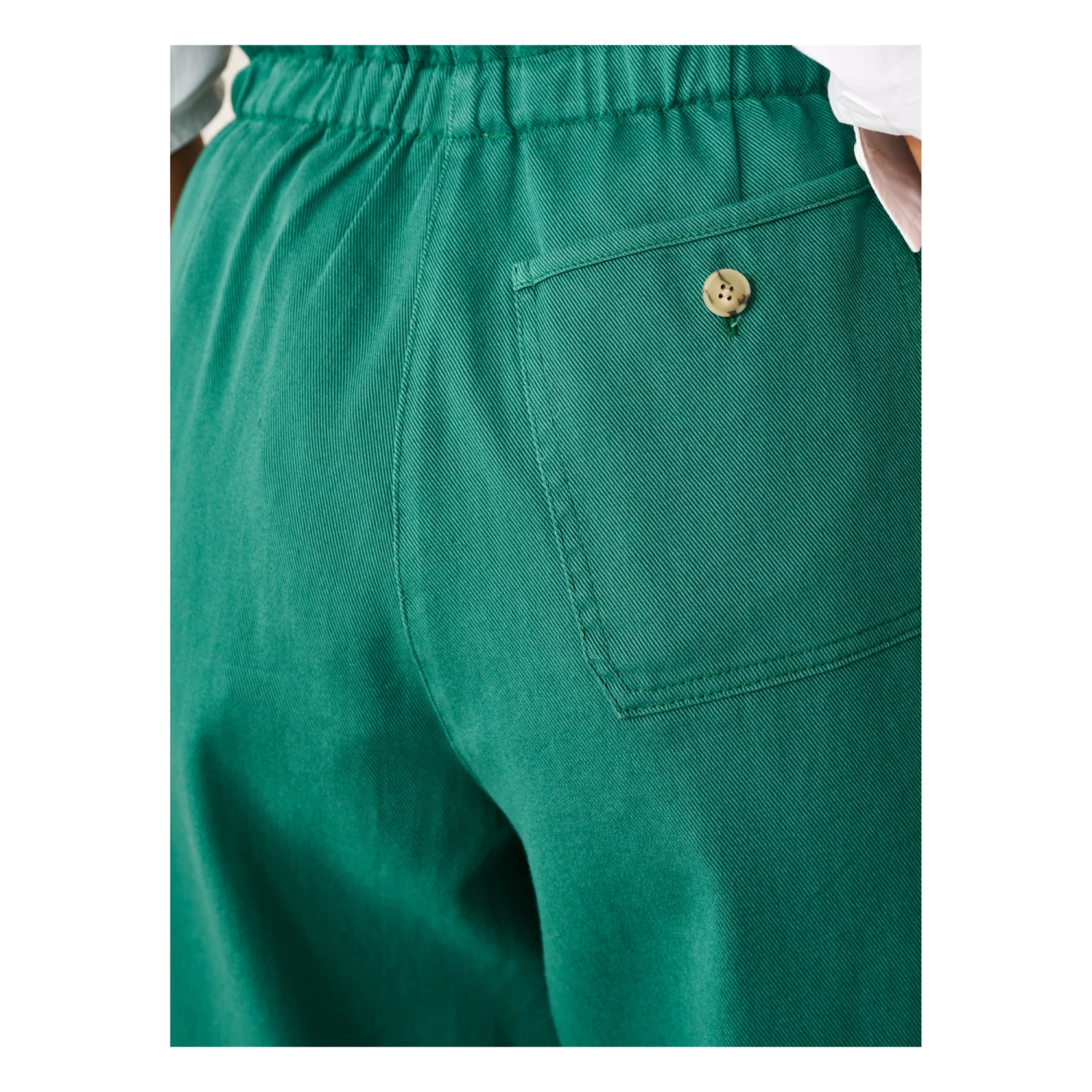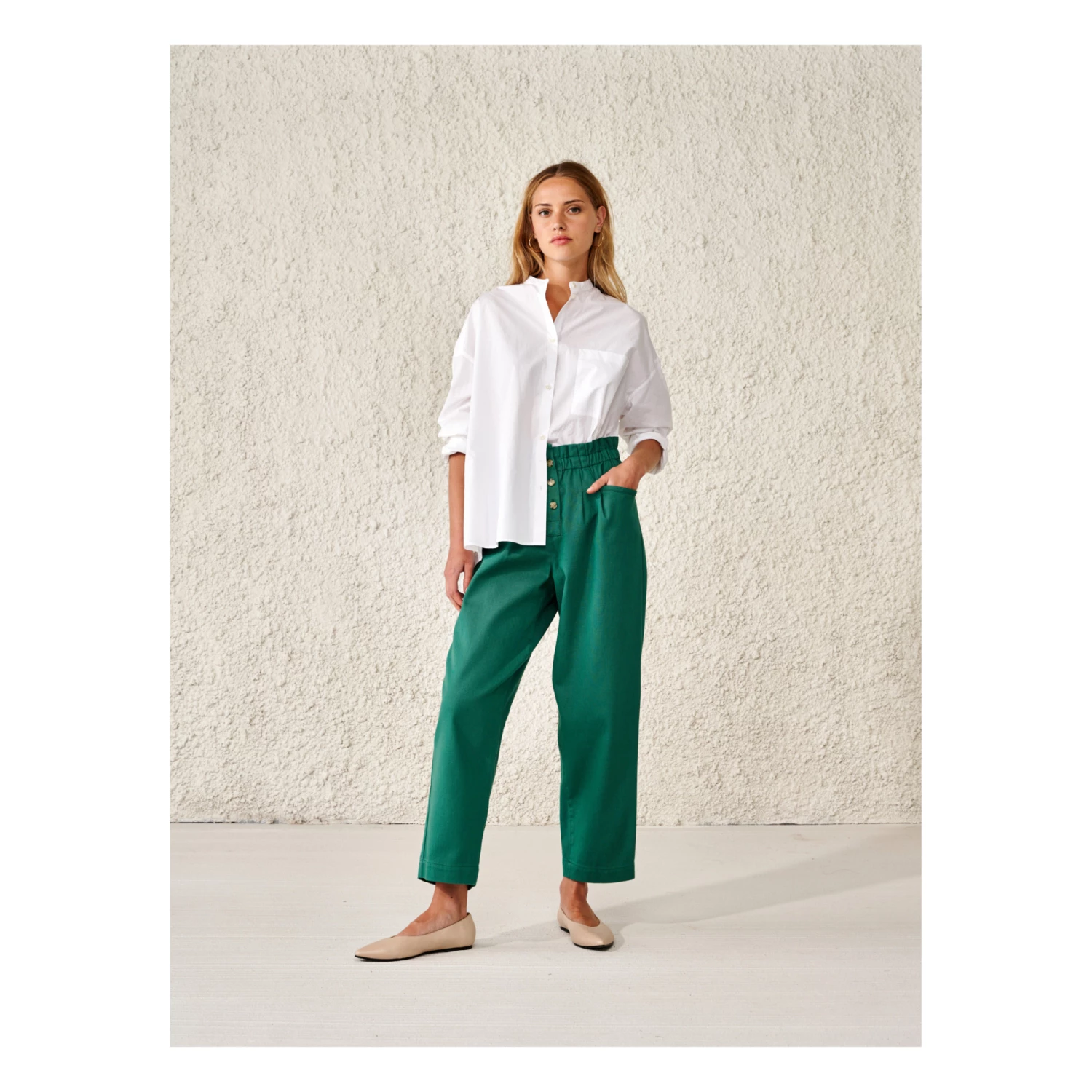 - Top stitched, Front patch pocket(s), Back patch pocket(s), Frilled edges, Elasticated waist, Inverted pleats