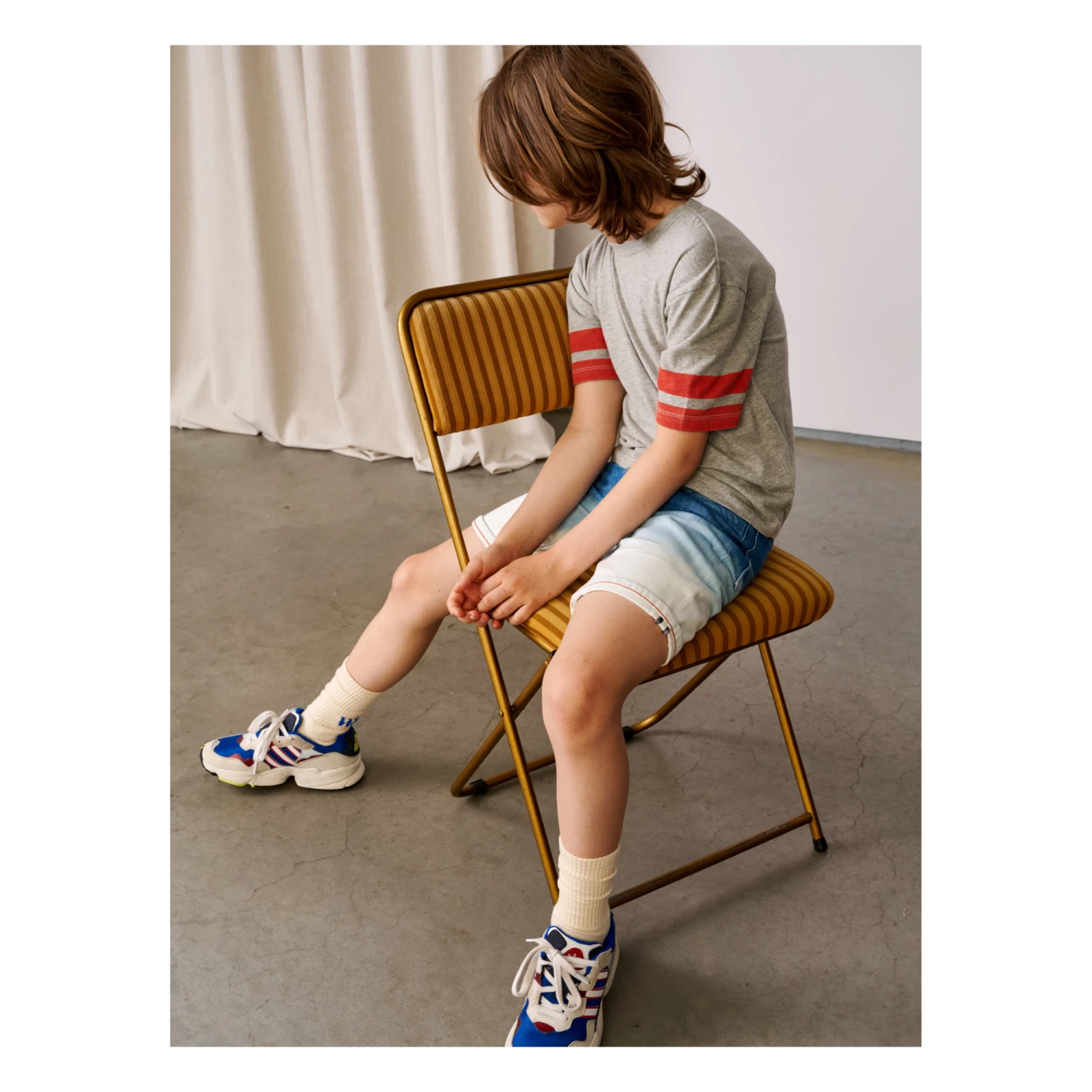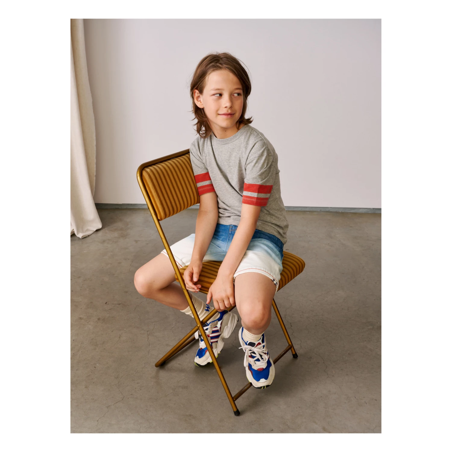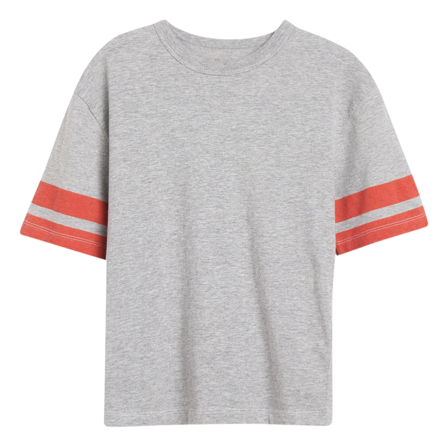 - Contrasting stripes, Crew neck, Top stitched, Short sleeves, Ribbed neckband, Comfortable