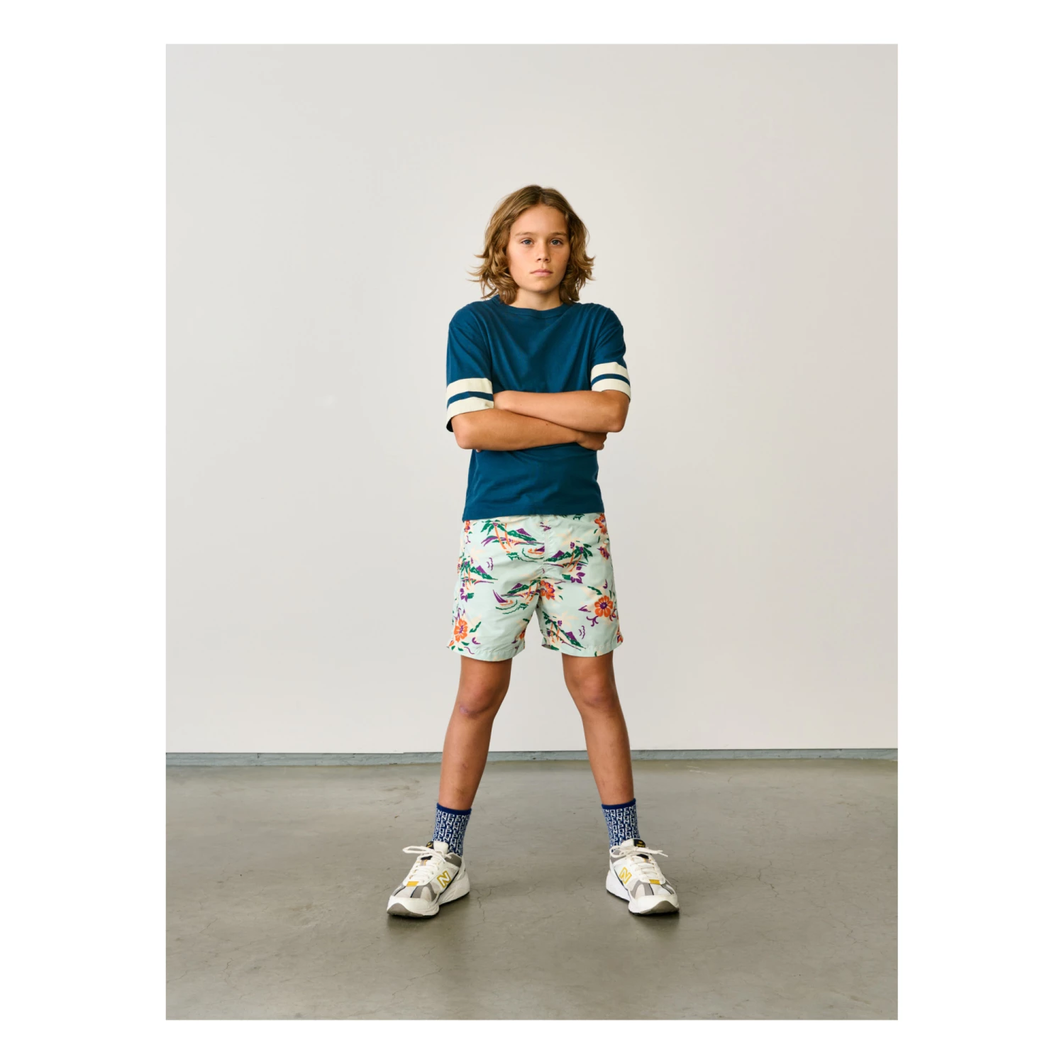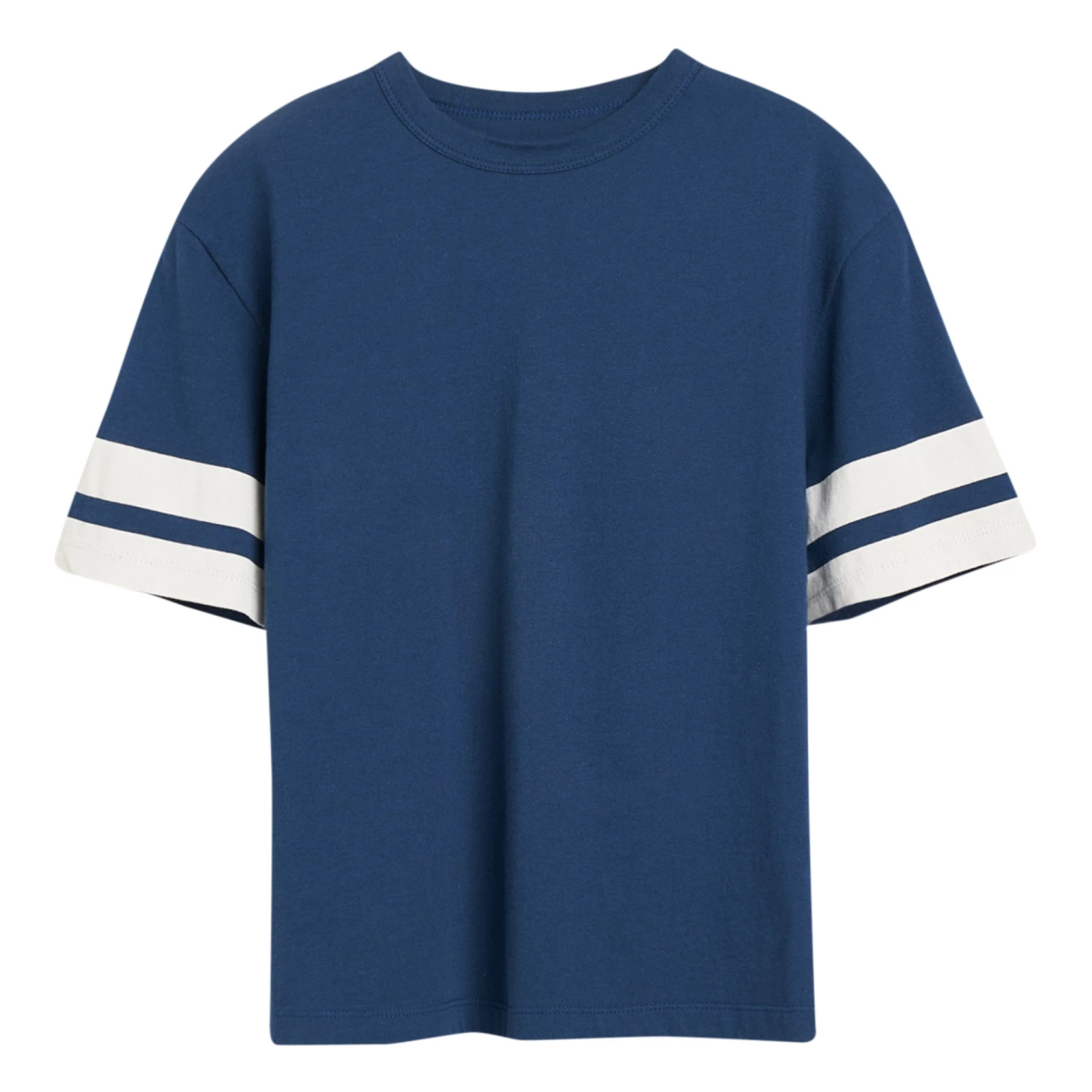 - Contrasting stripes, Crew neck, Top stitched, Short sleeves, Ribbed neckband, Comfortable