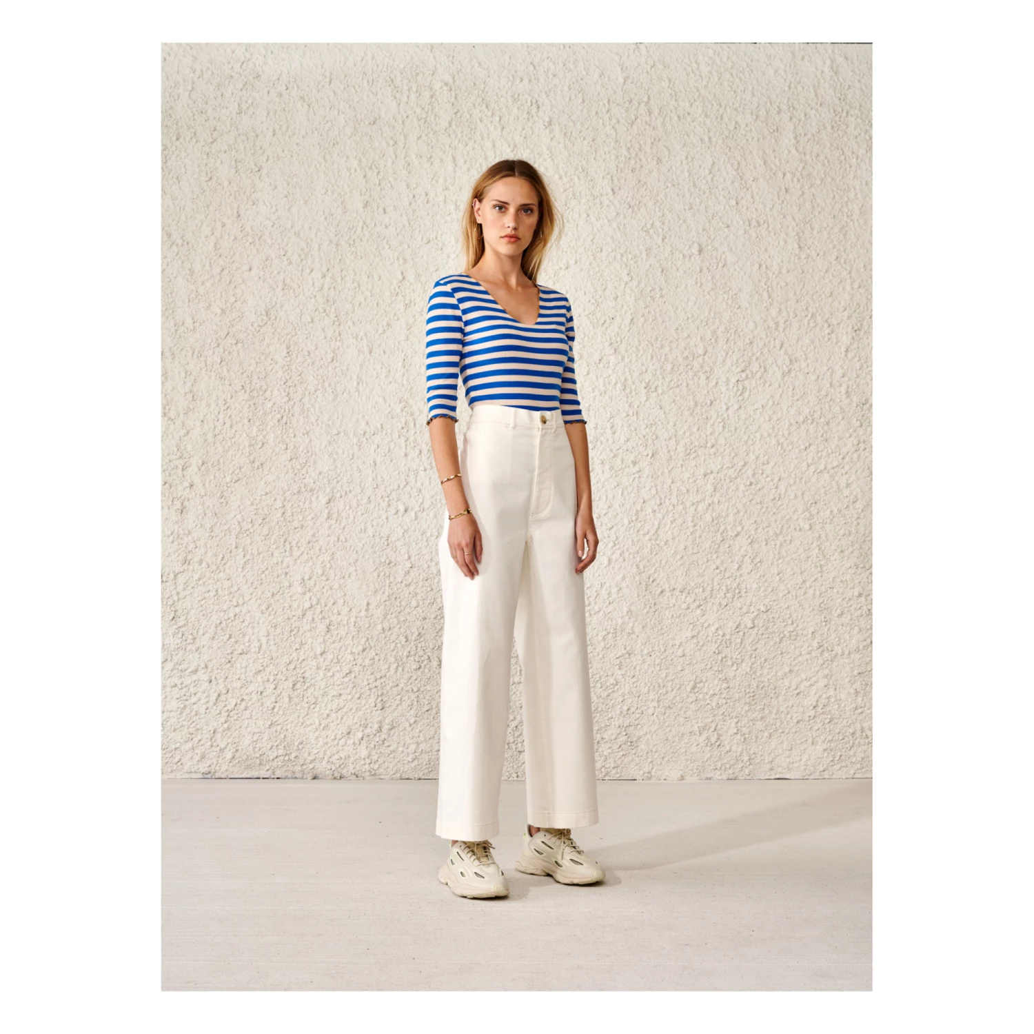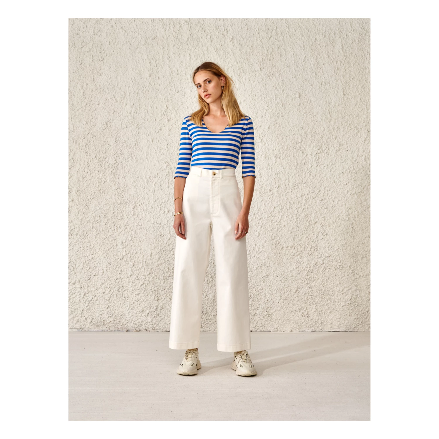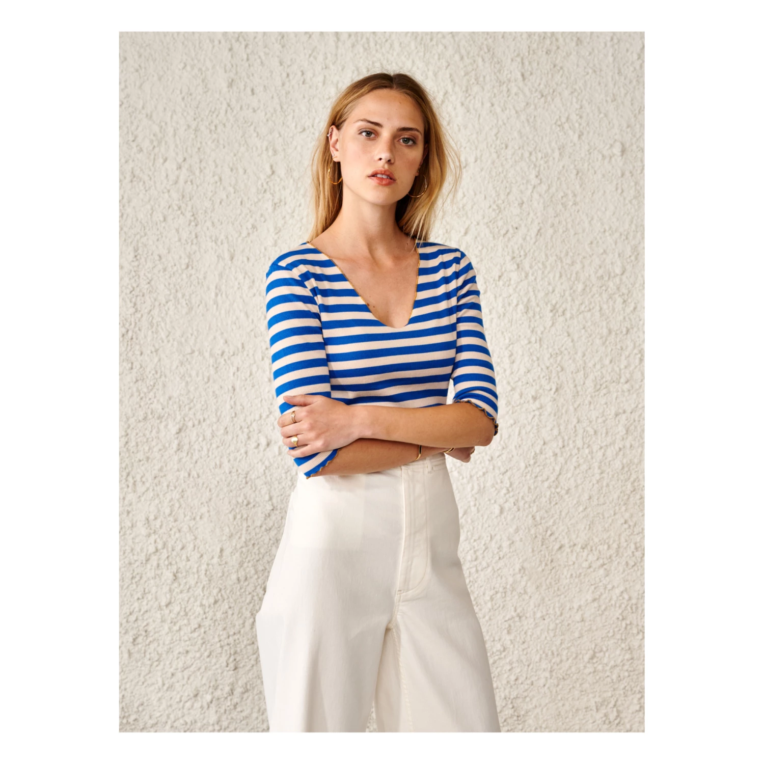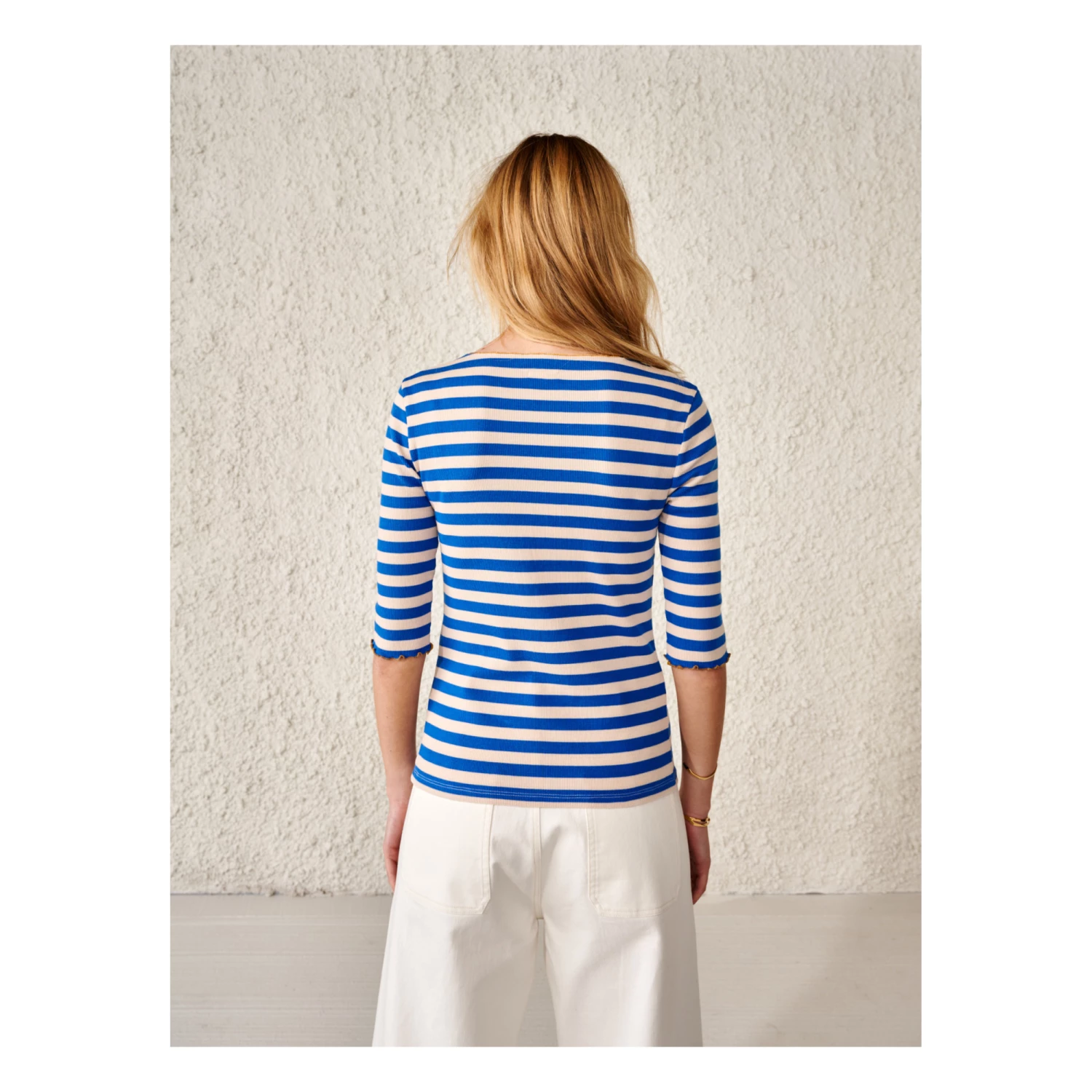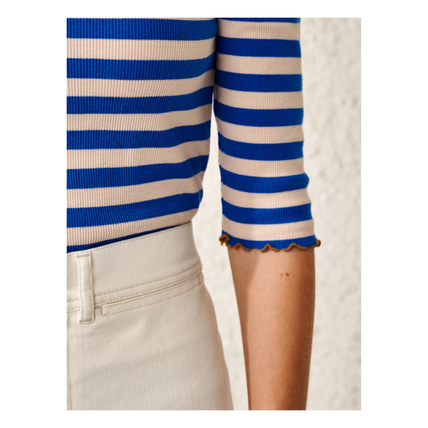 - V neck, 3/4 sleeves, Frilled edges, Contrasting edges