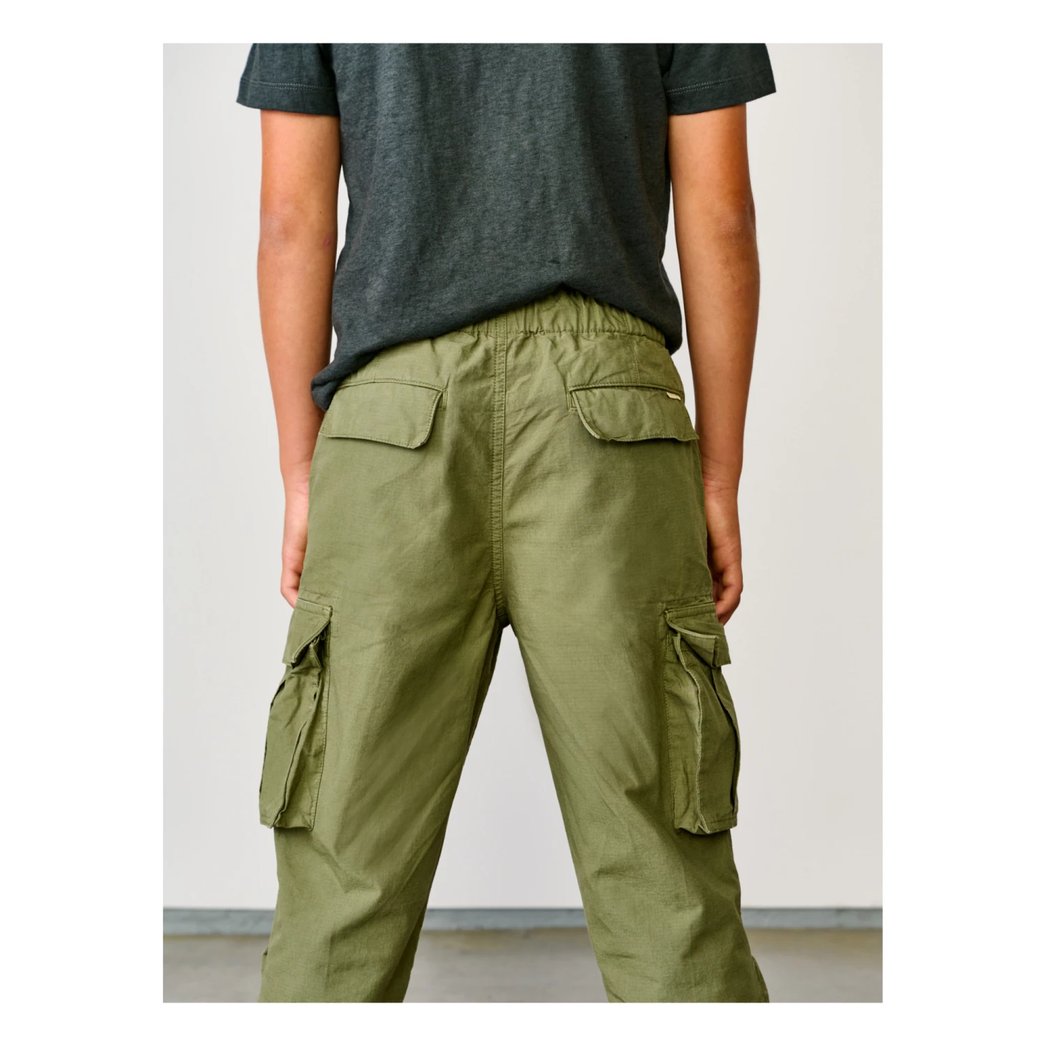 - Top stitched, Bellows pocket(s), Flap pocket(s) on the back, Italian pockets, Elasticated waist, Sewn-in brand label, Comfortable