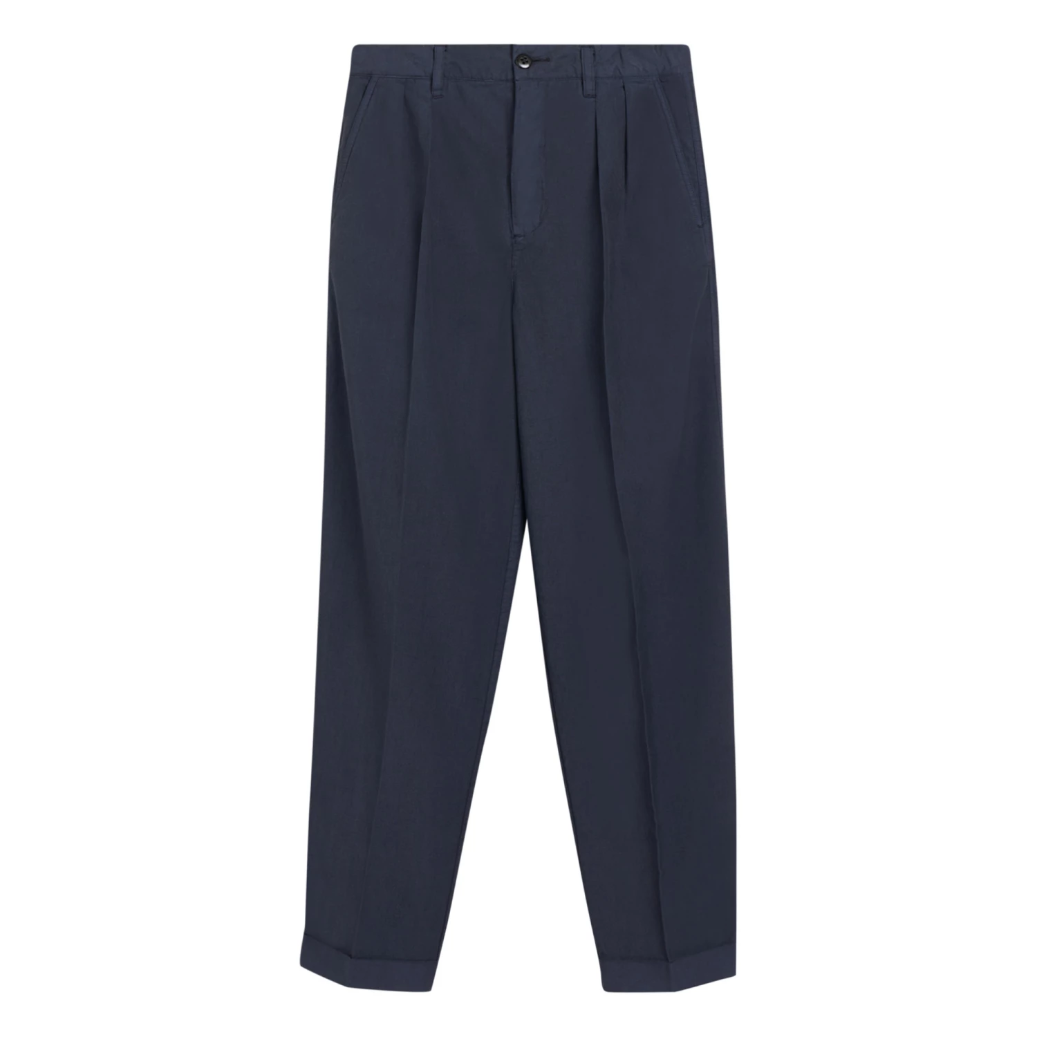 - Top stitched, Inverted pleats, Piped pocket(s) on the back, Italian pockets, Bottom turn-ups, Belt loops at waist, Sewn-in brand label