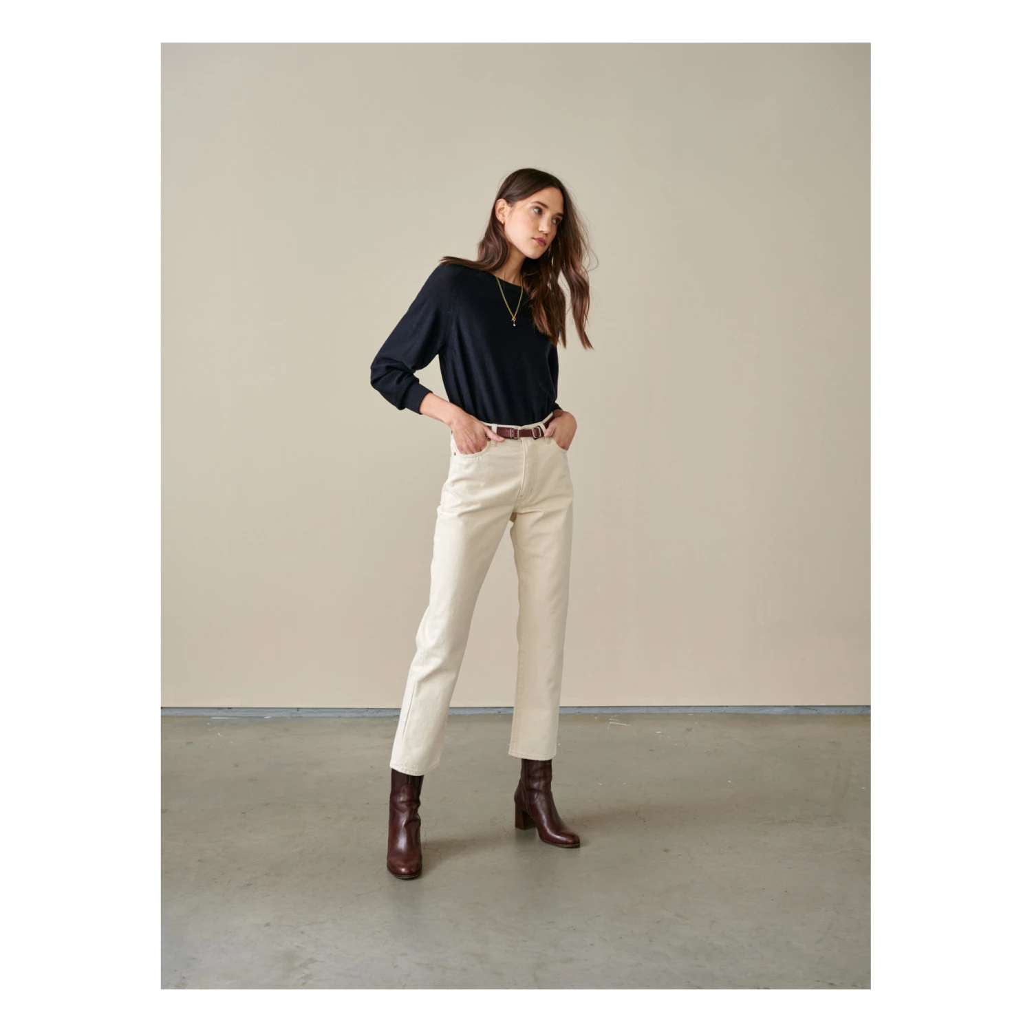 - Studs, 5 pockets, Top stitched edges, Belt loops at waist