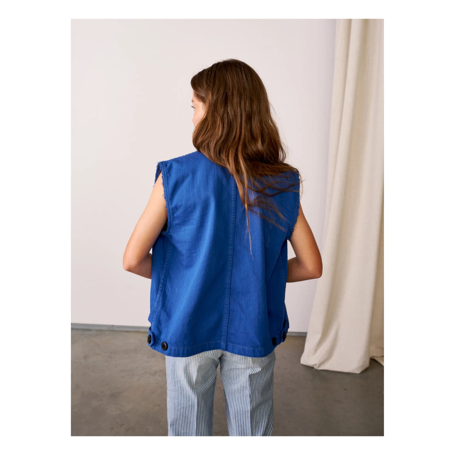 - Top stitched, Straight edges, Press stud flap pocket(s), Sleeveless, Shirt collar