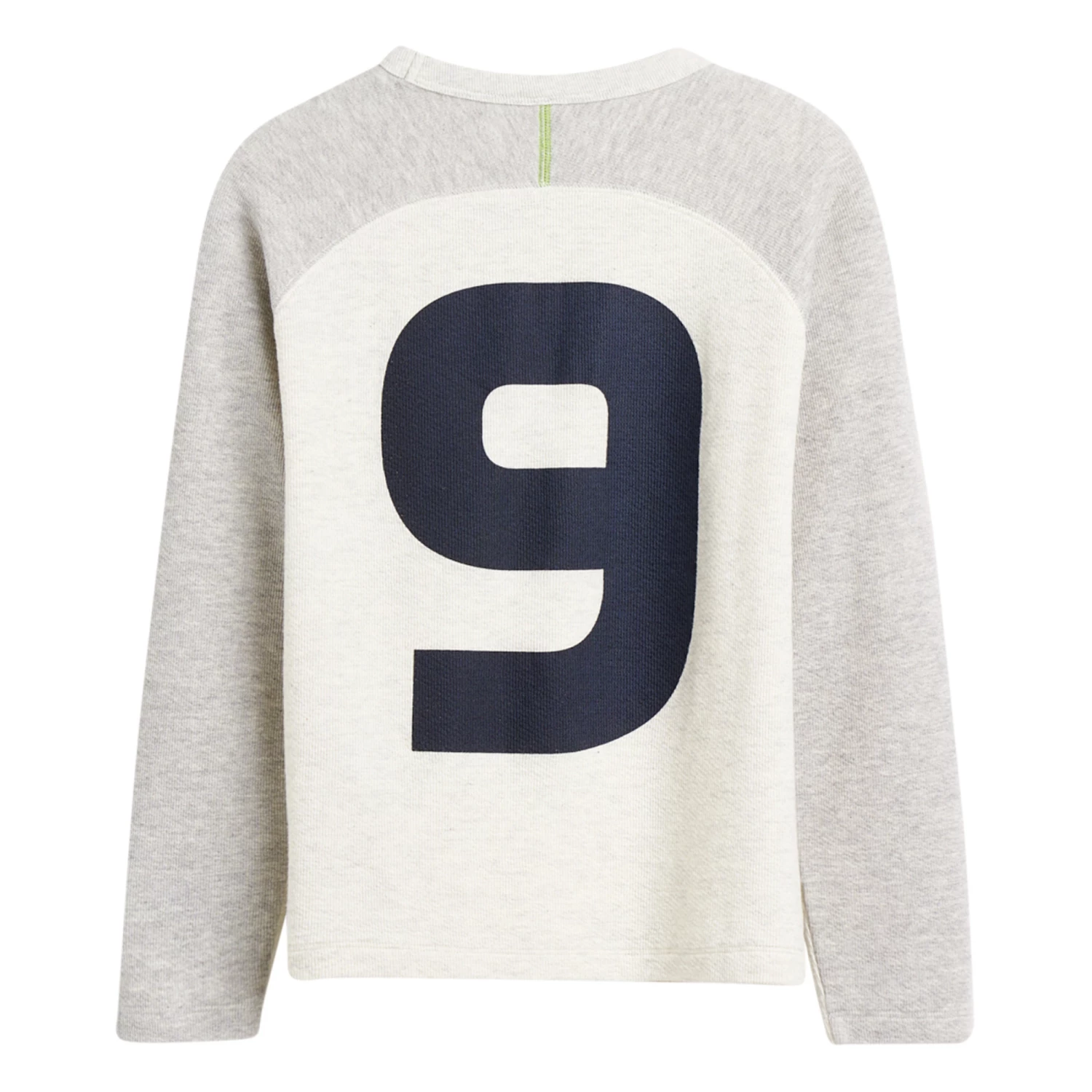 - Low armholes, Crew neck, Top stitched, Long sleeves, Print on back, Ribbed neckband