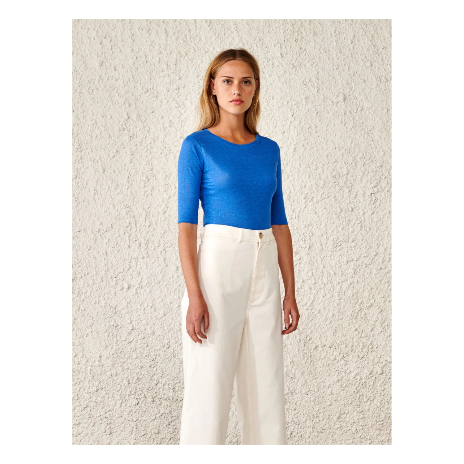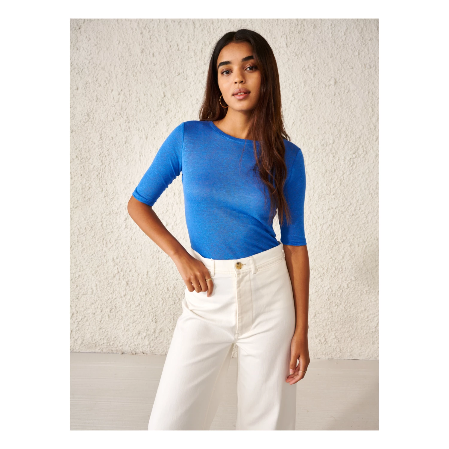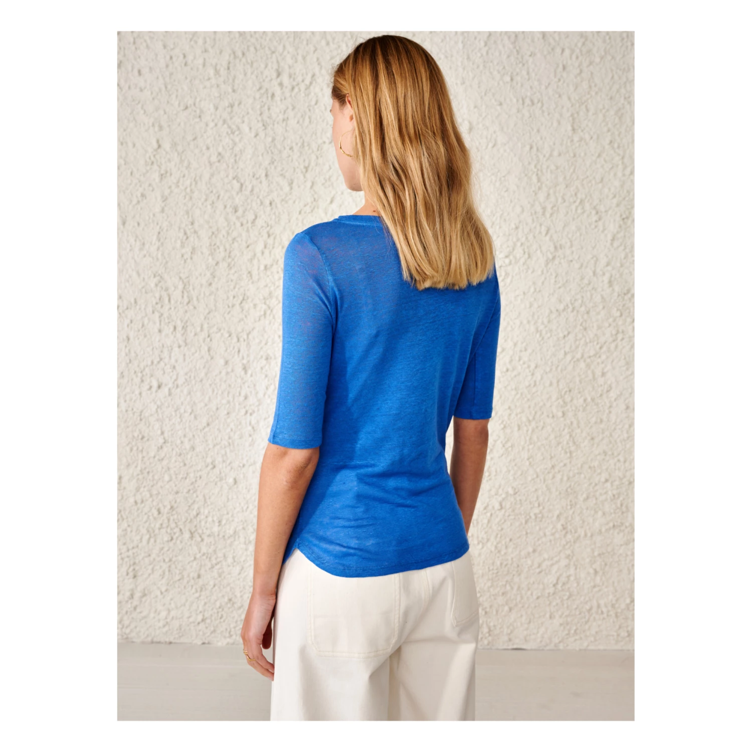 - Rounded at the sides, Crew neck, Embroidered logo, 3/4 sleeves