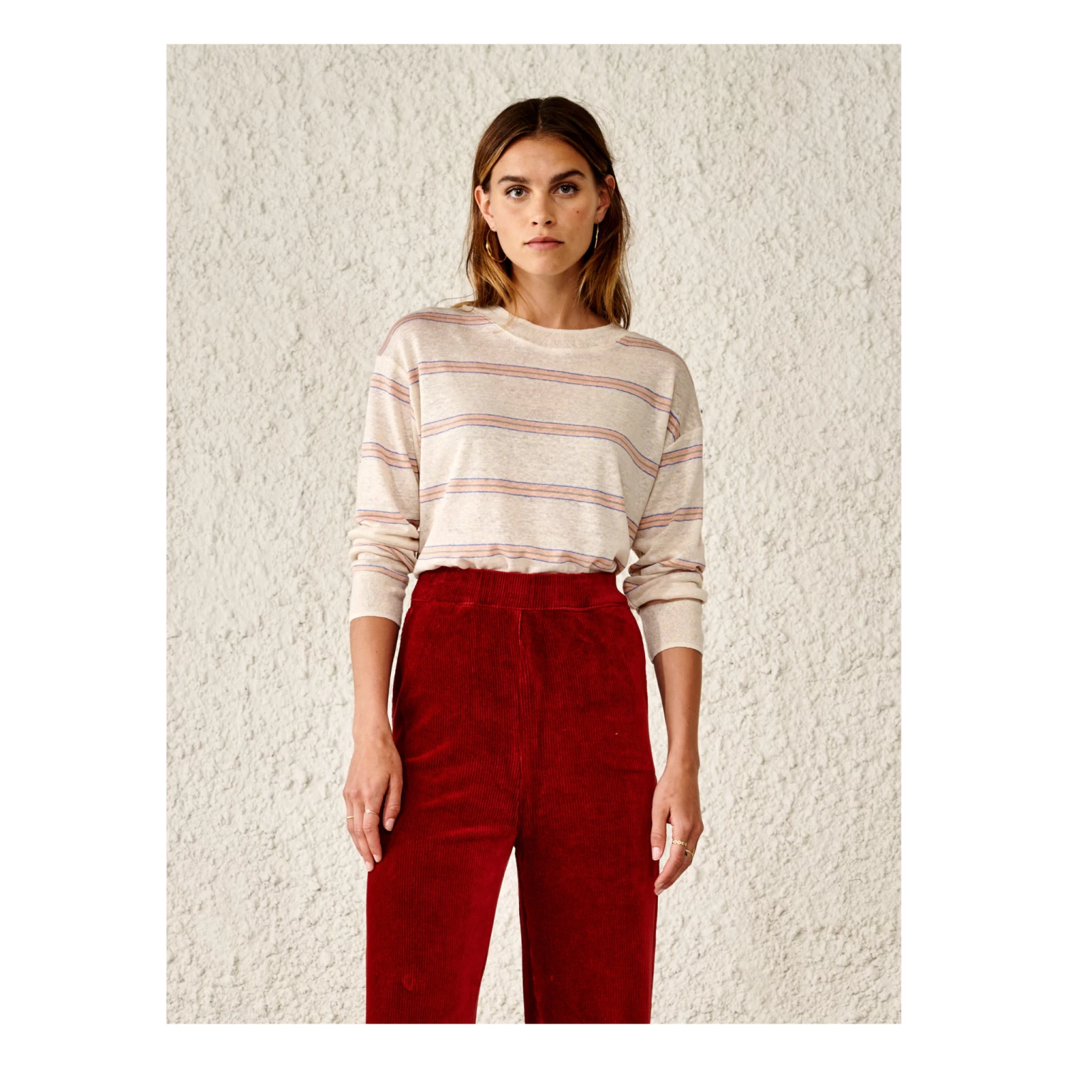 - Low armholes, Crew neck, Flowy, Long sleeves, Ribbed cuffs, Ribbed neckband