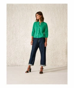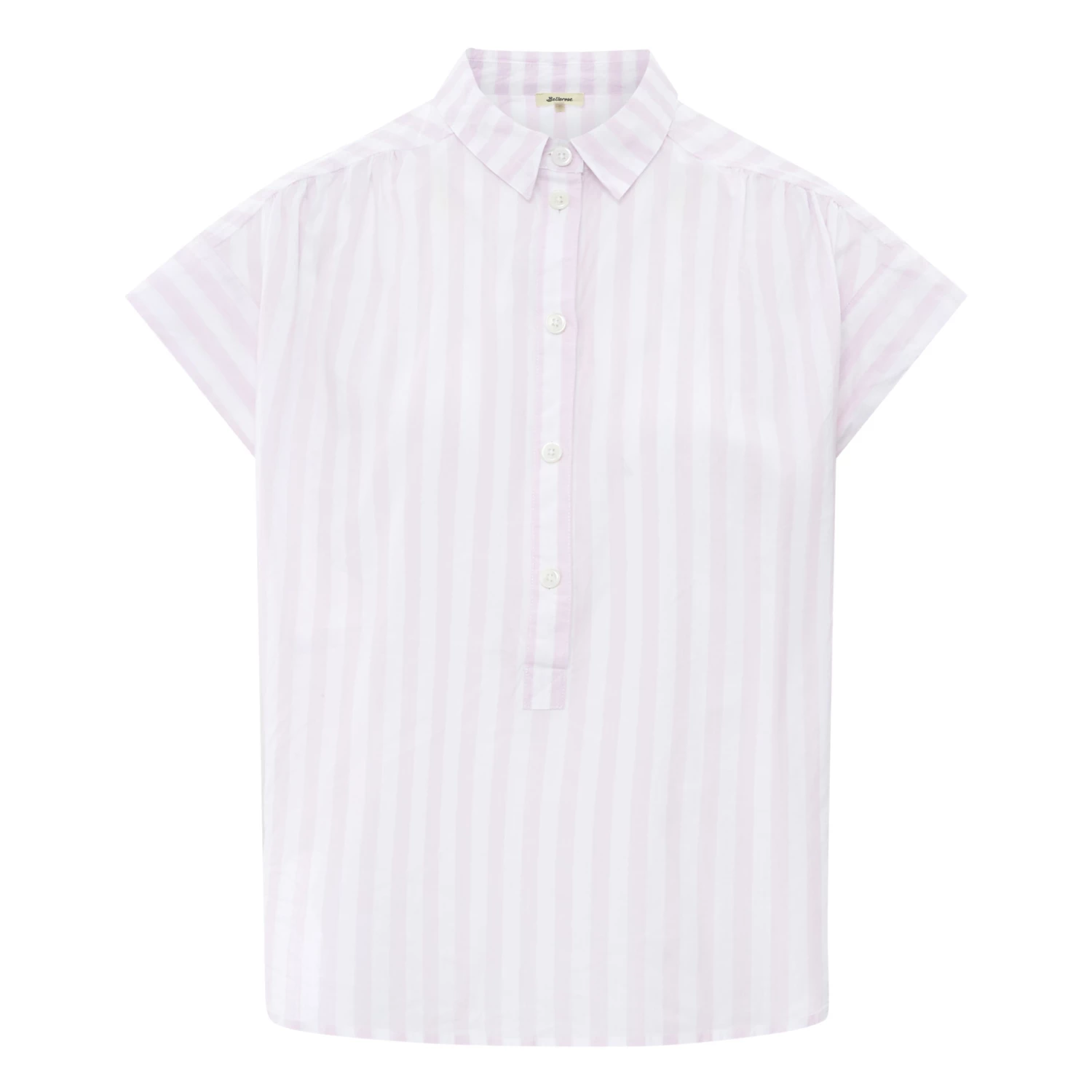 - Rounded at the sides, Slit side(s), Flowy, Lightweight and comfortable, Short sleeves, Contrasting top stitch, Shirt collar