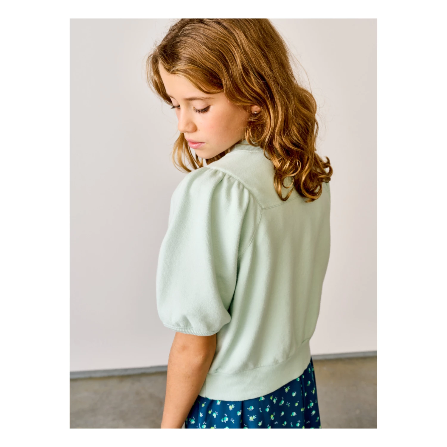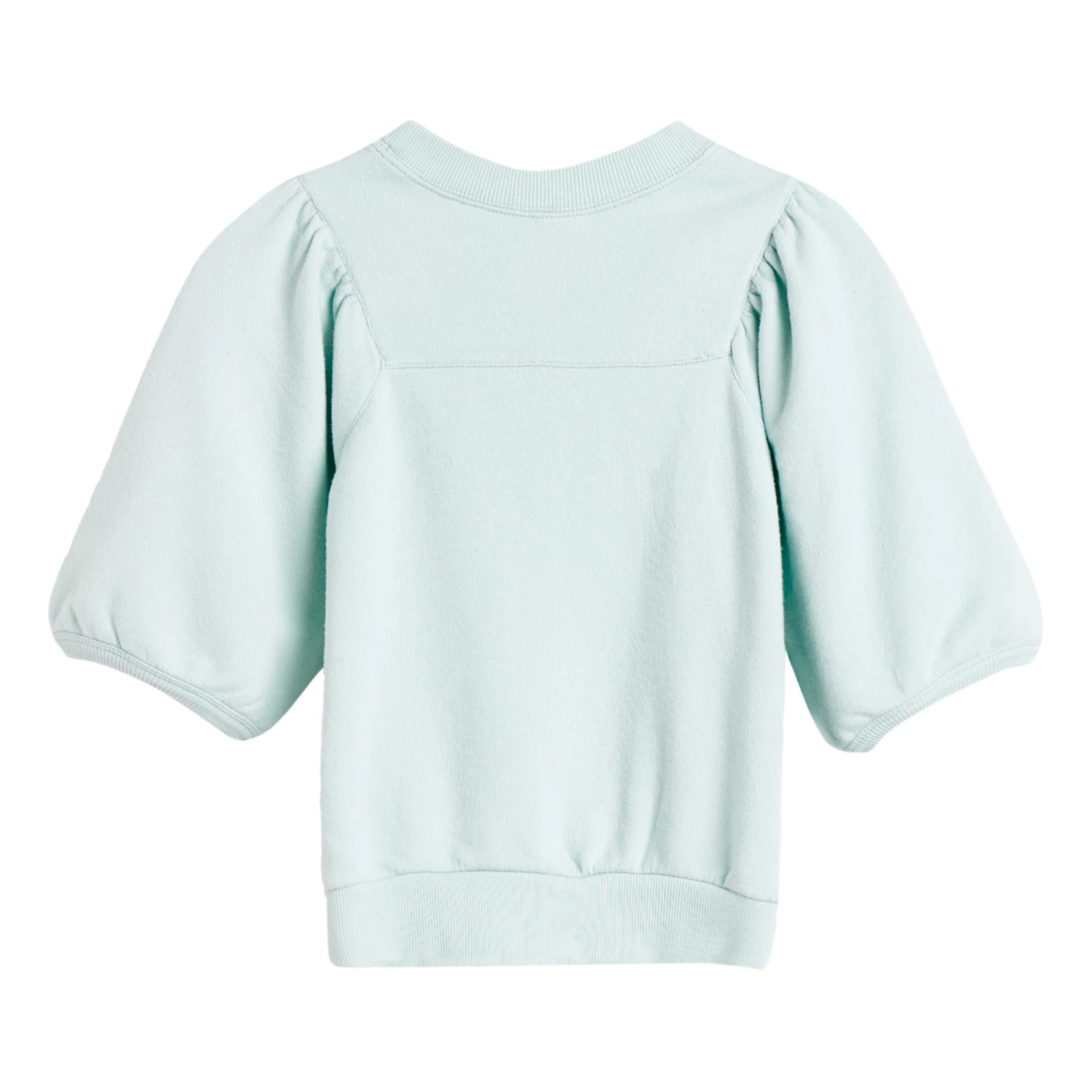 - Decorative cut-out, Gathered armholes, Crew neck, Top stitched, Balloon sleeves