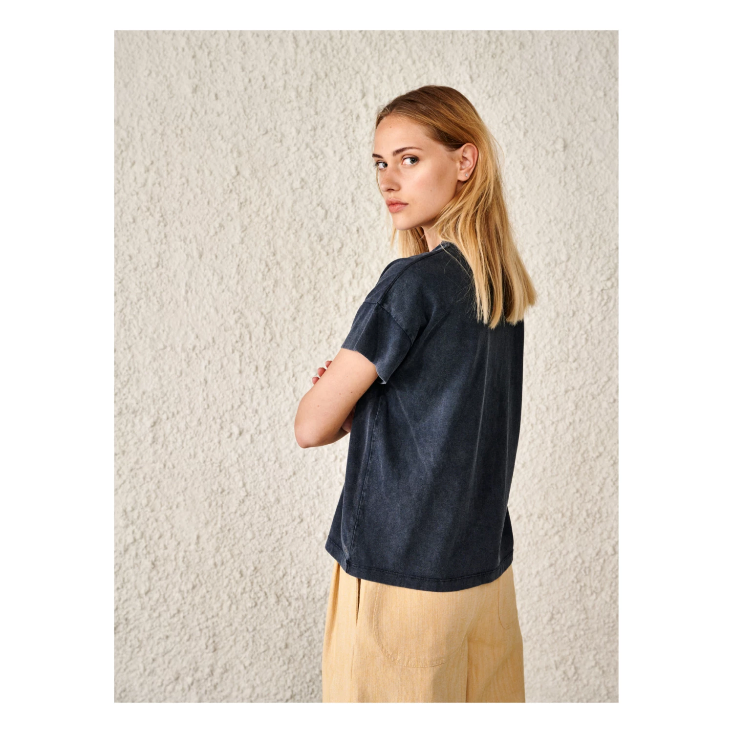 - Stonewashed, Low armholes, Crew neck, Flowy, Short sleeves, Sewn-in brand label, Ribbed neckband